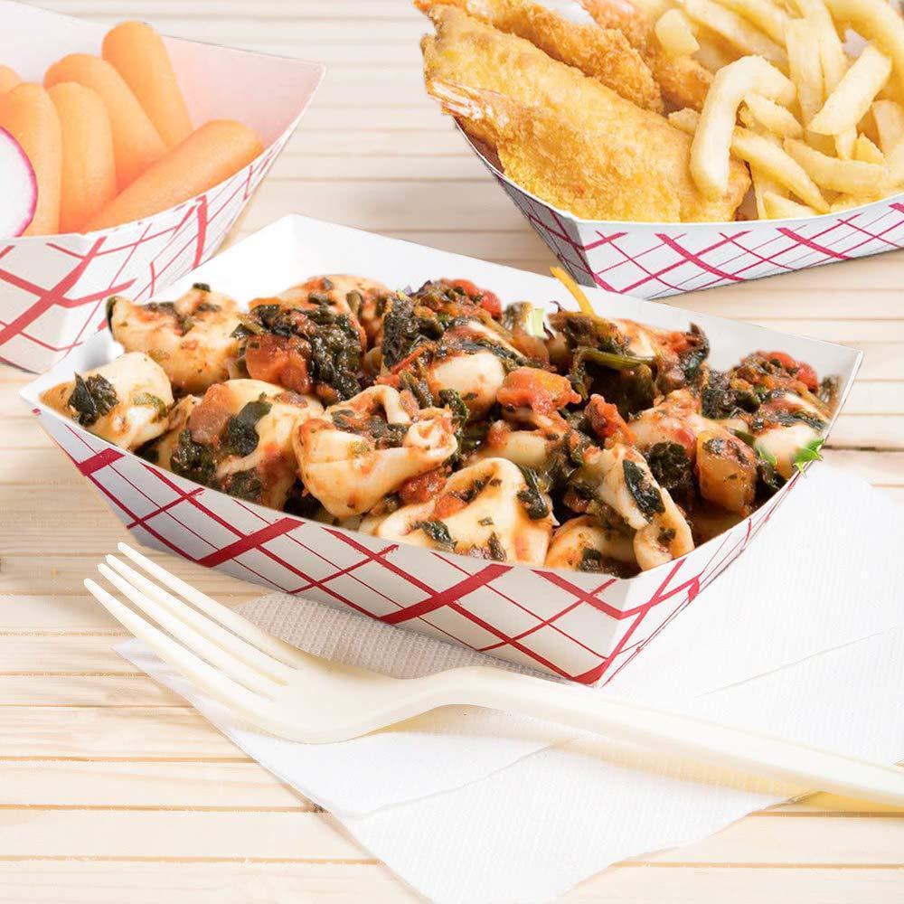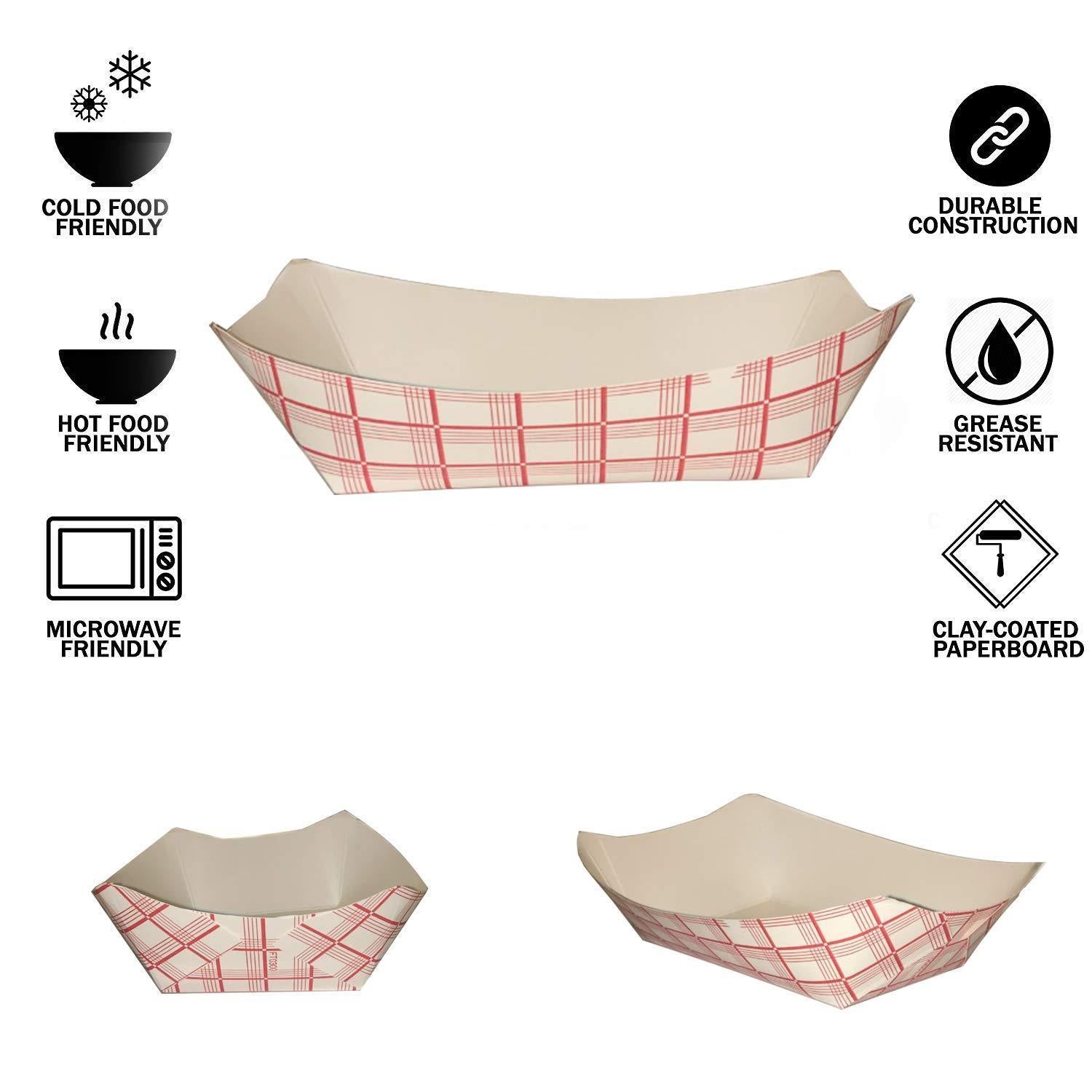 Disposable Paper Food Tray 3Lb Heavy Duty, Grease Resistant 100 Pack. Durable, Coated Paper Food Basket for Fairs, Concession Stands & Food Trucks. Holds Treats Like Hot Dogs, Fries, Nachos and Tacos!
