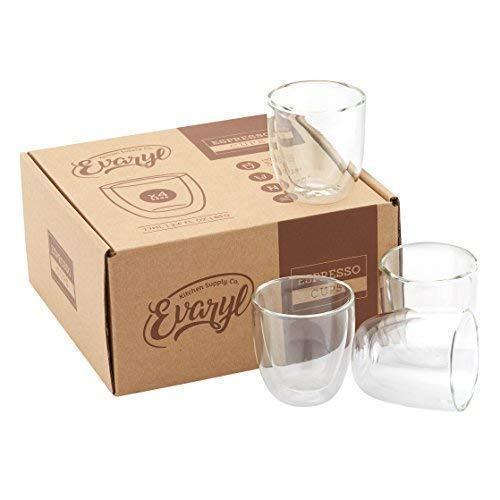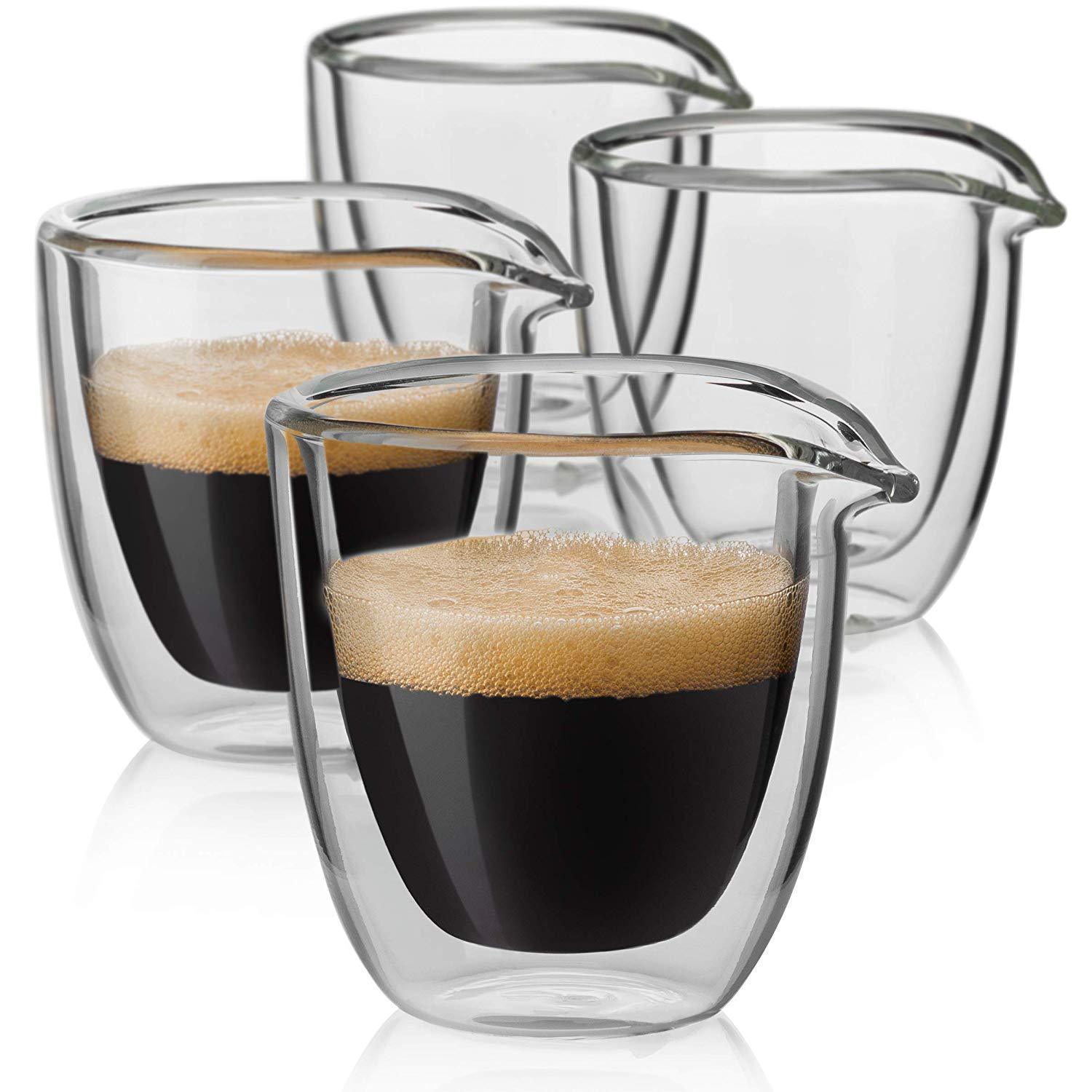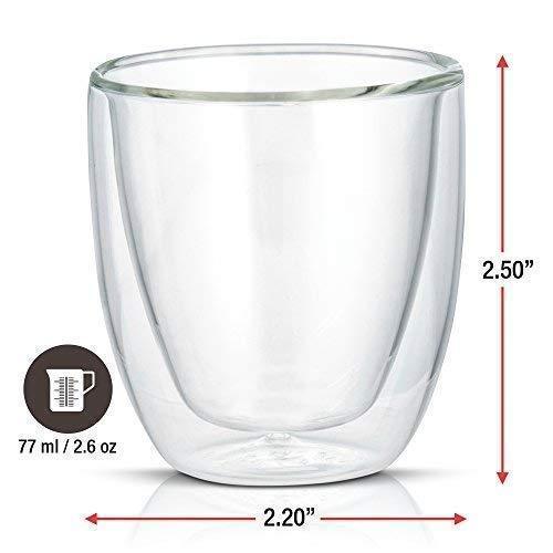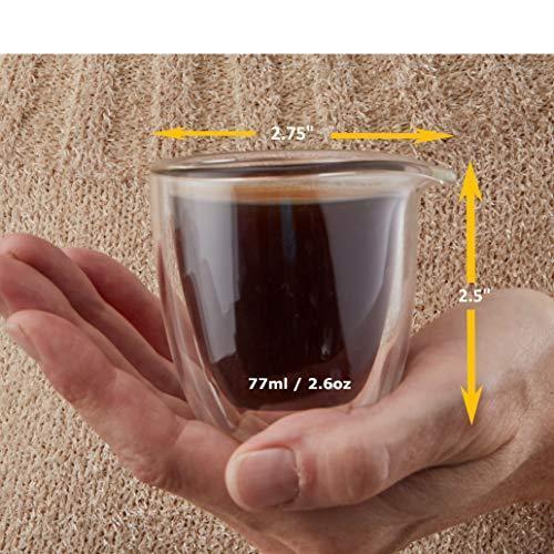 Double Wall Espresso Cups Set - Insulated Coffee Shot Glasses - 2.6oz, Set of 4 - Demitasse Gift Box