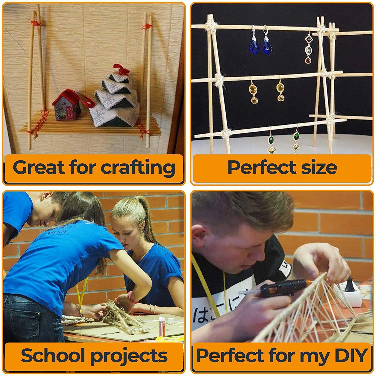 š The set includes 100 pcs Wooden Dowels for Craft. Size: Length 12inches - Diameter: 3/16 inch Dowel Rods. Made of high-quality natural wood.