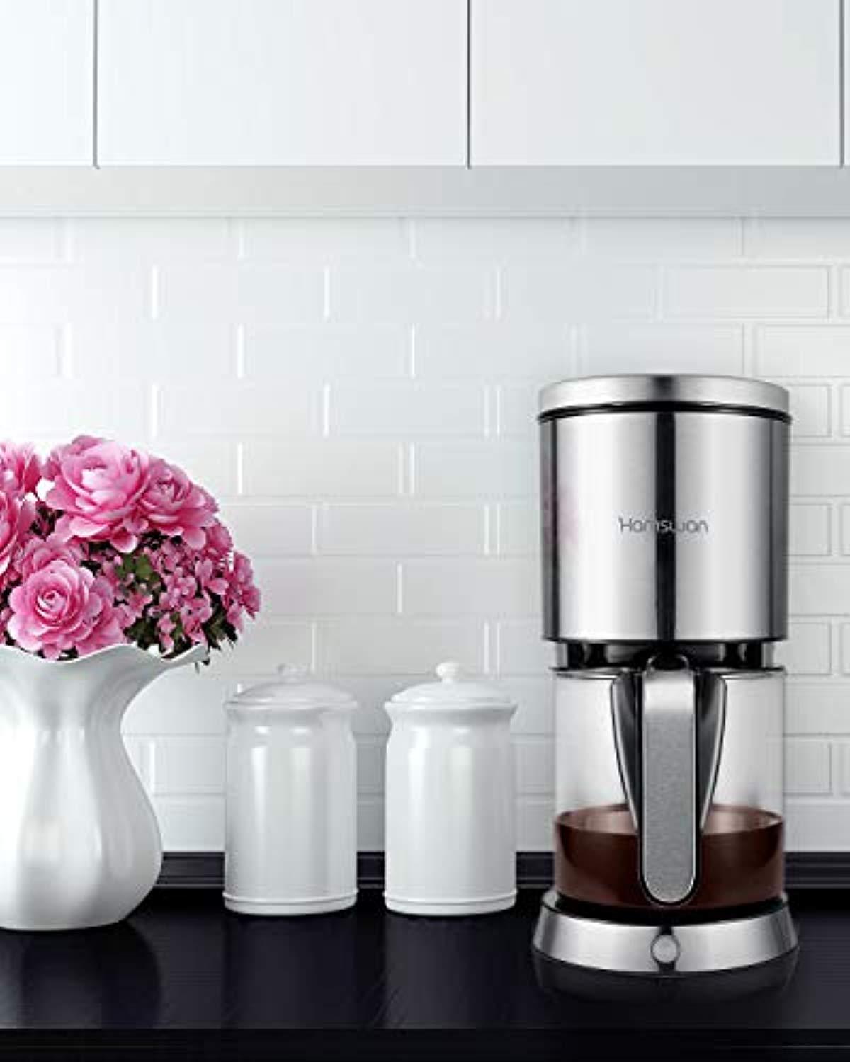 Drip Coffee Maker, HAMSWAN AD-103 Coffee Maker Coffee Pot, Small 10 Cup Coffee Machine with Glass Thermal Carafe, Insulated, Keep Warm, Automatic Shut Off for Single Serve & House Use