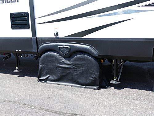 SPRUCE UP YOUR AREA: Tire covers for RVs constructed from sleek flannel-backed vinyl in black color that will look great and keep your RV neat and tidy; Inside flannel lining protects your tires from scratches; Perfect accessory to obtain a well-groomed camper or motorhome