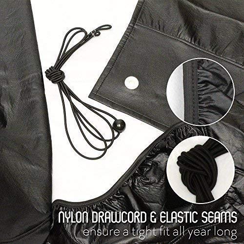 CUSTOM FIT: Form-fitting bottom bungee drawcord easily cinches around the bottom of the tires to keep the camper tire cover secure even on the windiest or rainiest days; RV wheel covers 1-pack stands up to full sun exposure with simmering summer temperatures and frigid winter temperatures; For 1 side (buy second separately)
