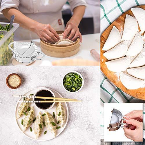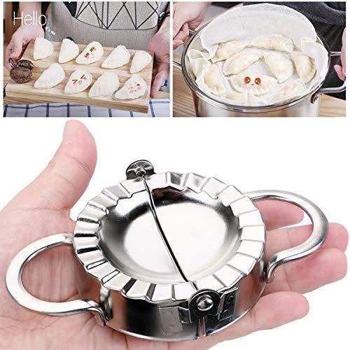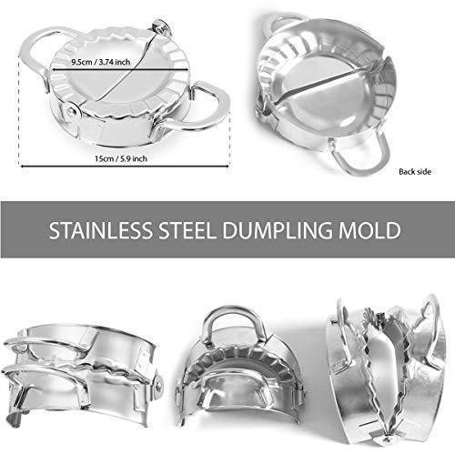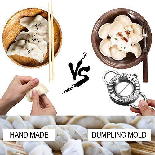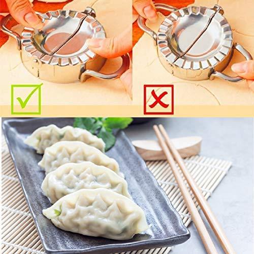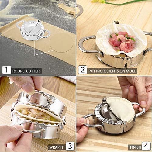 [STANDARD SIZE AND SAFE MATERIAL] Design 3.74 inch diameter and made from 304 stainless steel - FDA approved materials, you can use this dumpling mold without worry. In addition, we have upgraded the handle more firmly, the lower edges are sharper. With Dumpling Maker, your cake making will be safer and more convenient. [PERFECT TOOL FOR MAKING CAKES] From now on, you can comfortably make cakes like Make Dumpling, Pierogi, Ravioli, Empanada, Pelmeni,Pasties, Pot Stickers, Turnovers and More with Empanada press [EASY TO USE AND CLEAN] Place dough or pasta wrapper on the open press, add your favorite filling. Then flip up one side to cut, seal and crimp the edges, creating a perfect packet. After use, clean with warm soap , water or dishwasher safe and store in a dry place. [SUITABLE FOR ALL AGES] With Dumpling Mold, you can make cakes with kids easily at home. Not only that, it is also a great gift for women, mothers and children on holidays [LIFETIME 100% MONEY BACK GUARANTEE] We are so confident you'll LOVE your dumpling mold.We offer a full refund or new replacement if you’re not satisfied with your purchase.