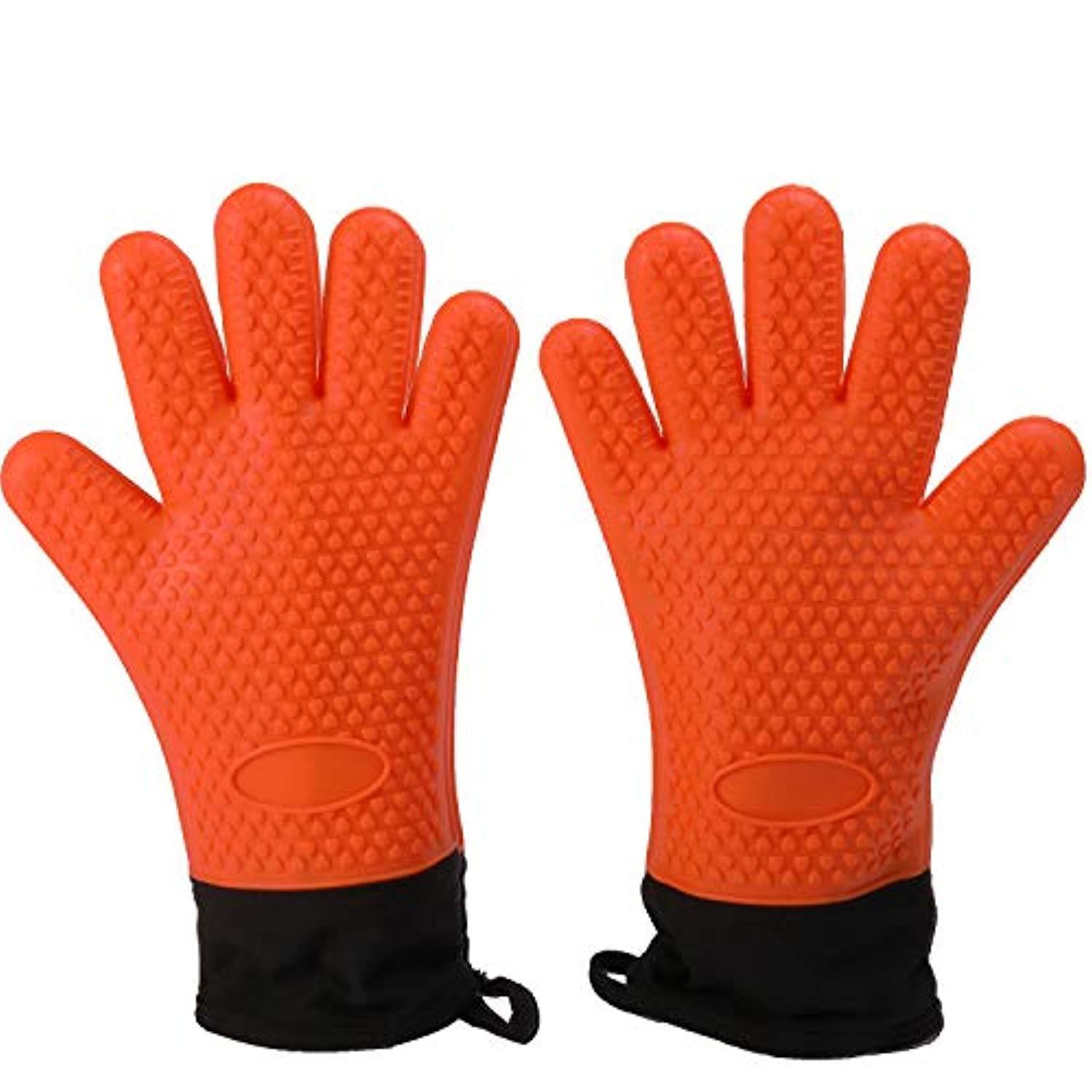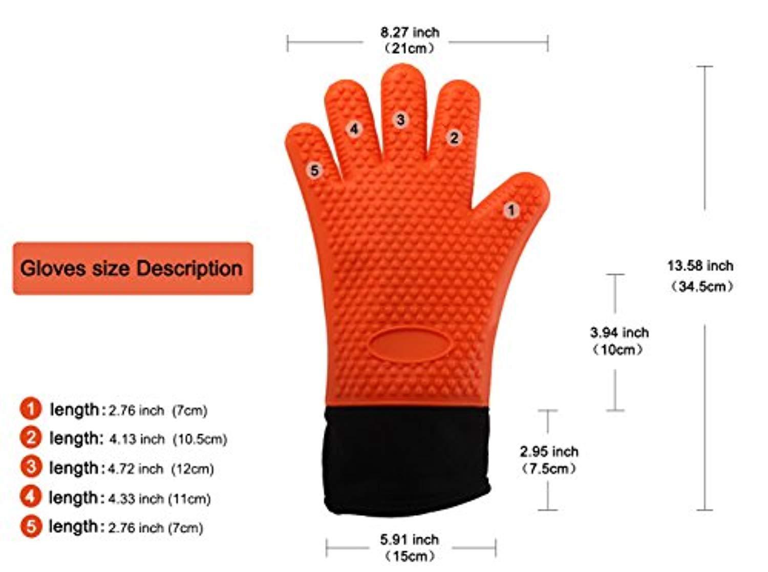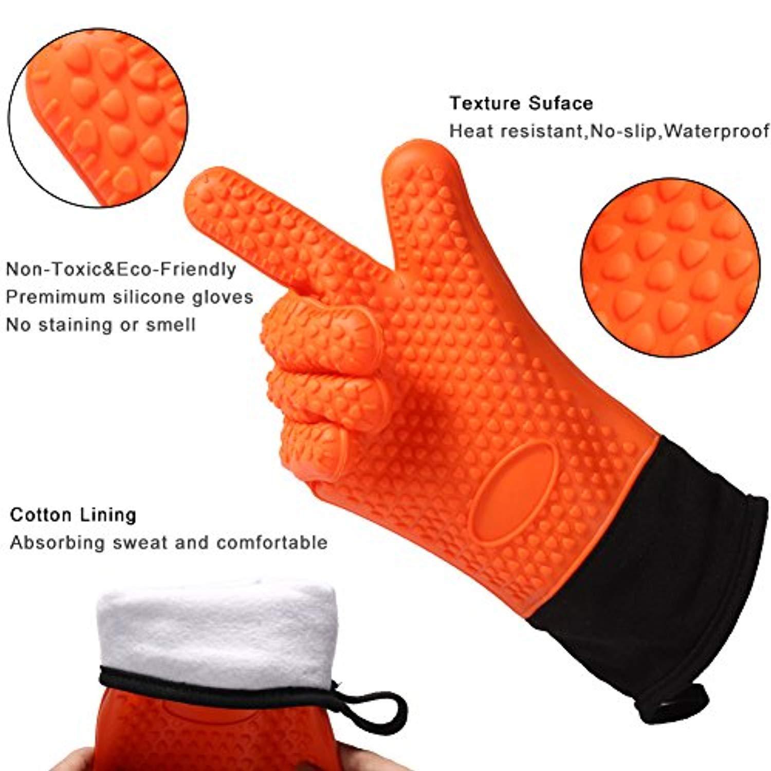✅DUAL-LAYER DESIGN: This BBQ gloves is designed with an outer silicone glove and inner heat-resistant cotton layer, comfortable and moisture wicking, maximize your heat protection from grill and oven temperatures.