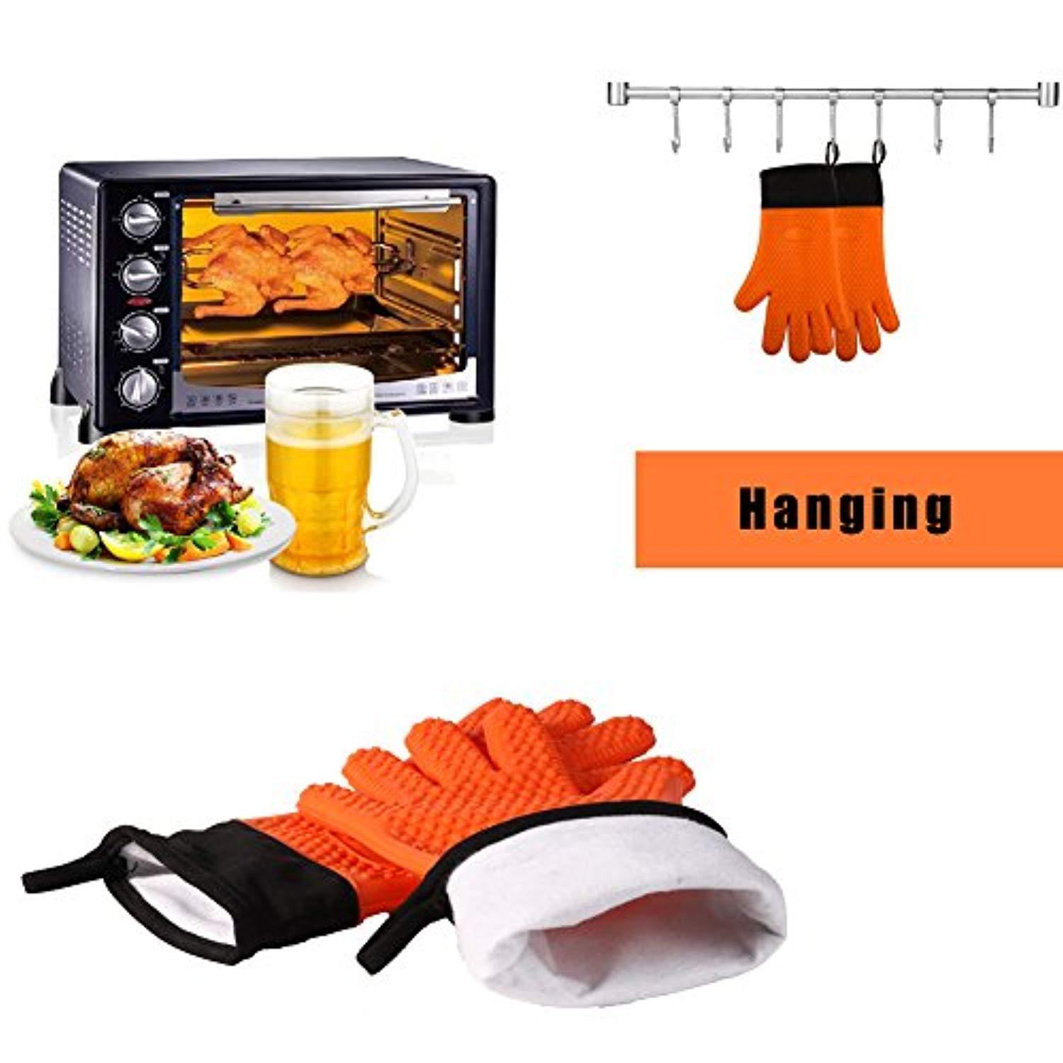 ✅LONG SLEEVE AND ROPE DESIGN: This cooking gloves is with a long sleeve to protect your wrist and arm and glove cuff is designed with a rope so that the glove can be hanged on a hook when not in use, easier to store and saves more room for kitchen.