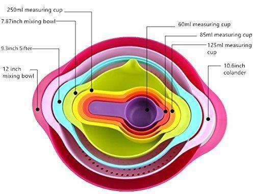 Edofiy 8 in 1 Rainbow Stackable Storage Mixing Bowl Set With Measuring Spoon Cup Set For Cooking Baking