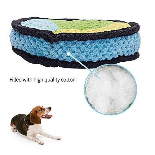 Low Stuffing Latex with Plush Dog Toy - Made with Non-Toxic natural latex and corn textured plush fabric with low stuffing insert. Features chew guard Technology and double-stitched seams to make it last longer than standard plush toys. Very chewy and soft, easy on dog’s teeth. Easy to clean, just rinse with water. Interactive Toy – Interactive games help reduce destructive behavior. Plush toys are good for fetch games, helps to release excessive energy and reduce boredom. Not recommended for dogs with aggressive chewing behaviors. Squeaky Chew Toy – The crisp squeaker sound keeps dogs engaged during playing time. Cute animal shape with squeaky sound can also stimulate Dog’s instinctual trill of chasing prey, satisfying natural desire. Size Chart(4th Image) -We recommend pick a size larger than the width of your dog's mouth, proper supervision is advised. Refer to the Size Chart Image & Choose the size/chew strength that is suitable for your dog. Suitable for small to medium sized dog breeds, such as Poodle, Bicho Frise, Border Collie, Papillon, or toy breeds. Larger breeds with relatively gentle chewing behavior can also play with these plush toys. Not recommended for dogs with aggressive chewing behaviors. 12 Months Warranty – Unconditional 12 months warranty. Please contact us by clicking “Ask a question” and we are here to help.