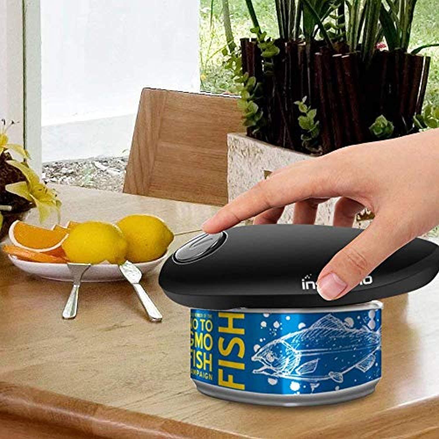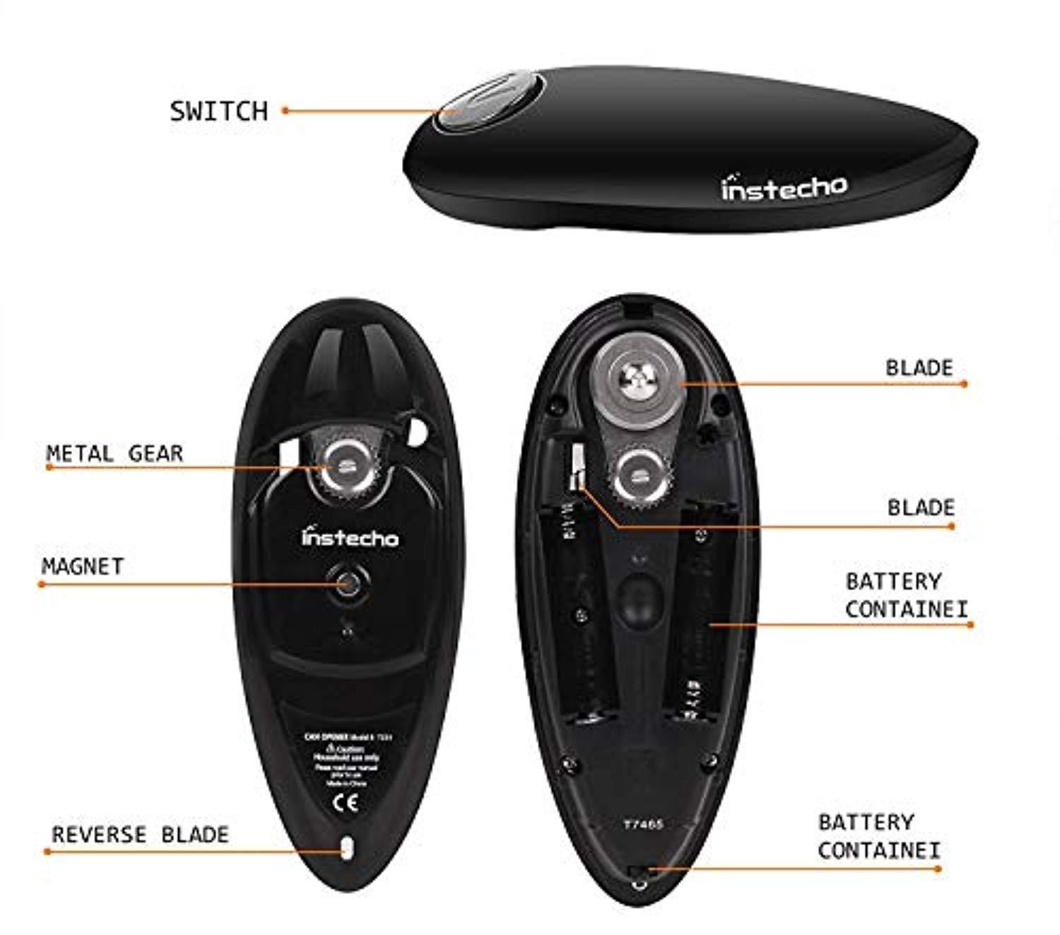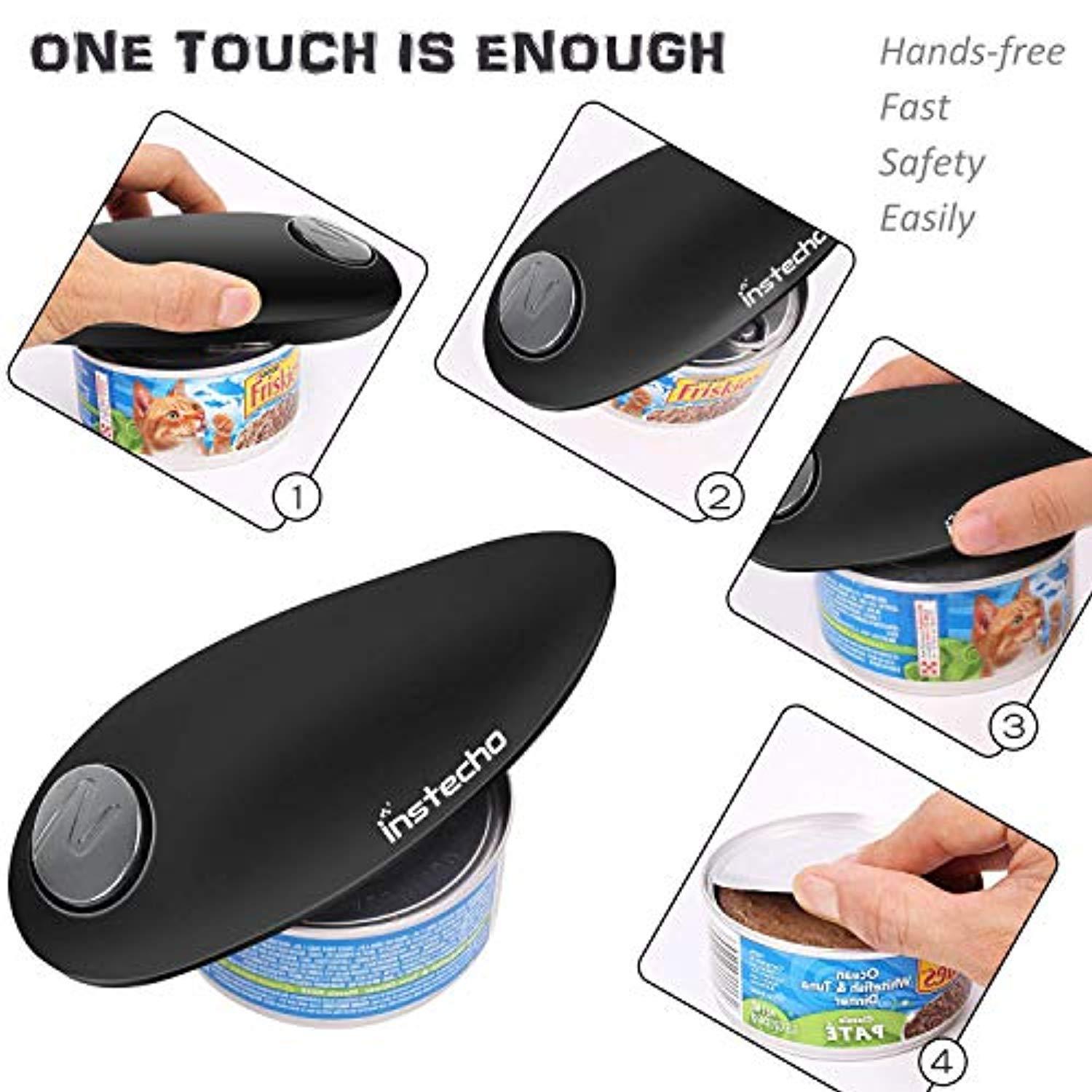1. No Sharp Edges:Perfect for individuals with arthritis or hand pain, requires no manual labor. 2. Effortlessly opens cans of any size at the push of a button. Please be noted that the can top / the blade should be bend, it is normal and not defective 3. This stylish kitchen gadget will self adhere to any can and automatically open it in seconds. We suggest you give some pressure by hand on the top of the opener to let the can opener self adhere to the cans. 4. Cuts around the side of the can to eliminate sharp and dangerous edges, creating an easily resealable lid with a smooth edge. Great for keeping food covered while preparing a meal.