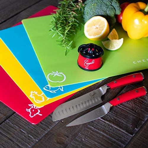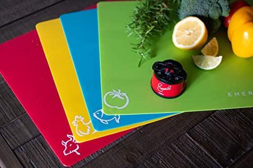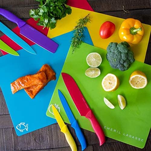 UNIQUE IDENTIFICATION: All of its beautiful bright color swatches are for easy identification. Impress guests with your visually stunning Emeril Cutting Board Mat Set - its non-stick design boosts cooking and prep efficiency. Cutting board mats come with lovely food icons, making it more interesting and presentable.