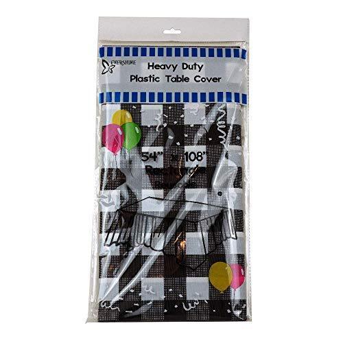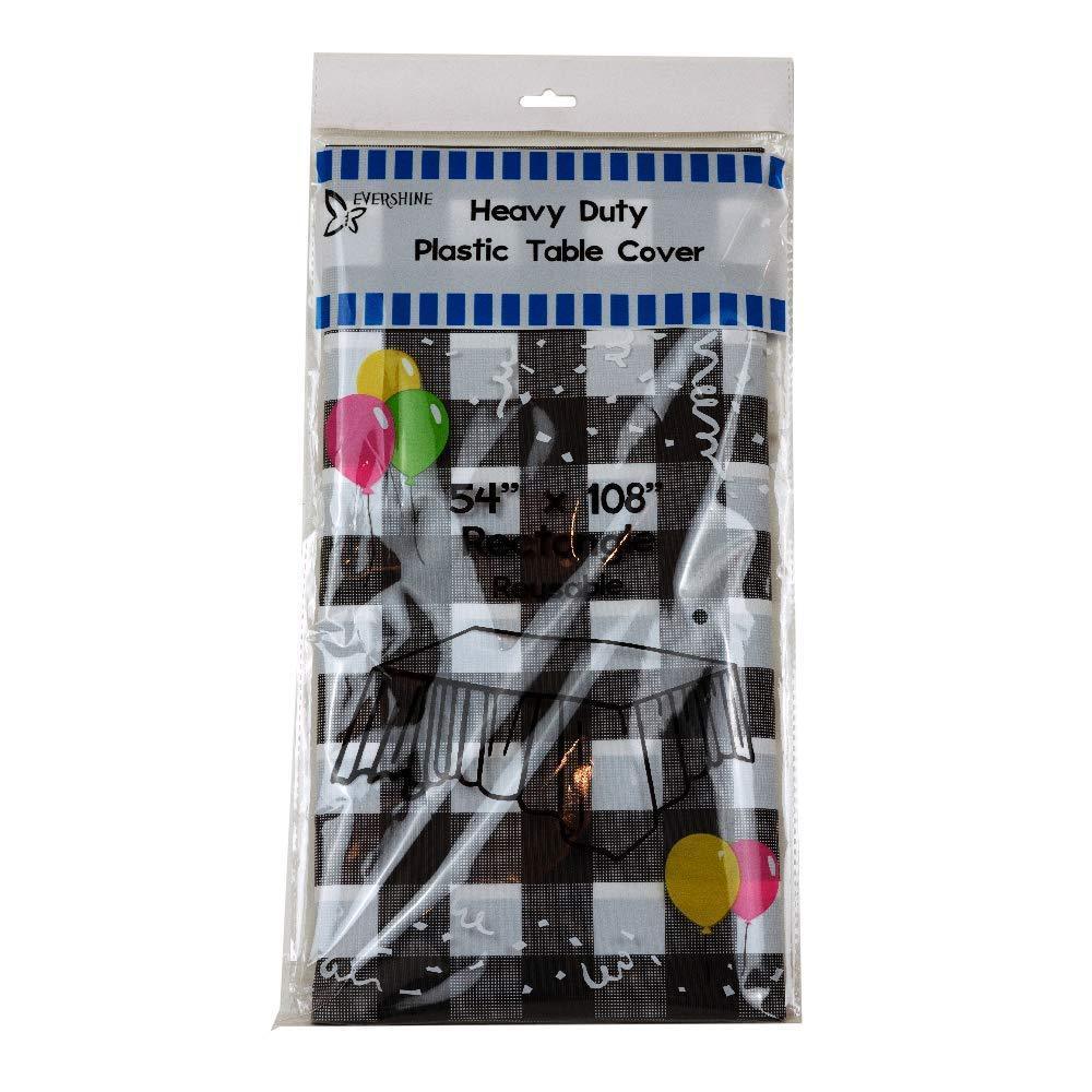 Evershine (12-Pack) Heavy Duty Plastic Table Covers Tablecloth (Reusable) (Round 84", Black)