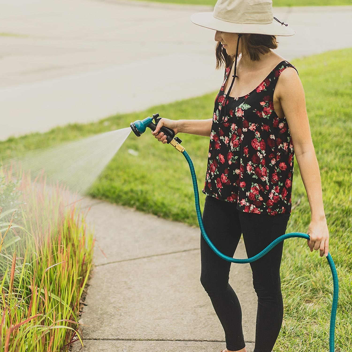 Expandable, Flexible and Retractable Garden Hose: 50 Foot Lightweight No Kink Hose with Solid Brass Fittings and 8-Pattern High Pressure Spray Nozzle