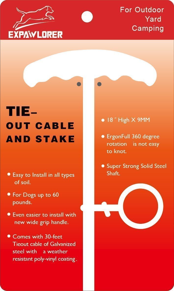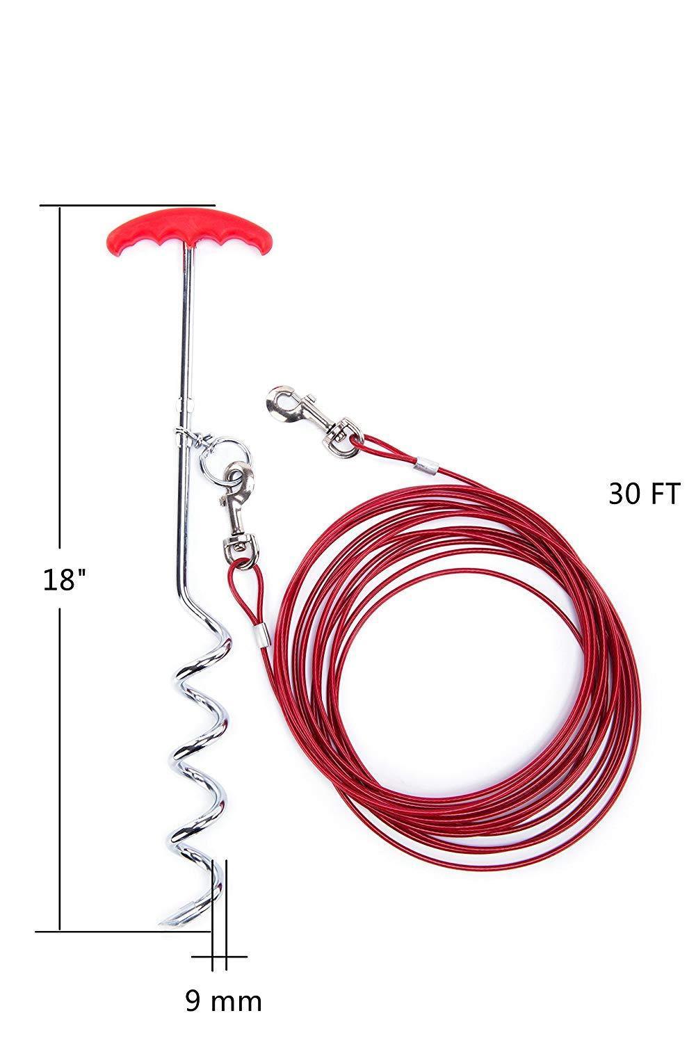 EXPAWLORER Dog Tie Out Cable and Stake 30 ft Outdoor, Yard and Camping, for Small to Medium Dogs Up to 60 lbs, 16" Stake, 30 ft Cable