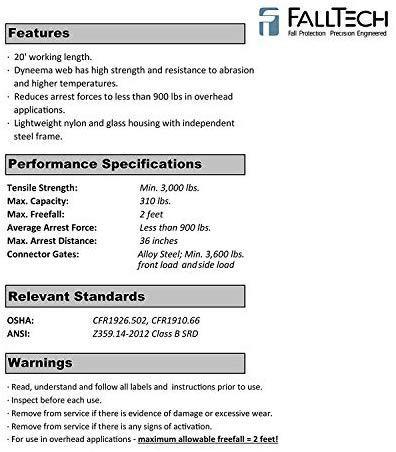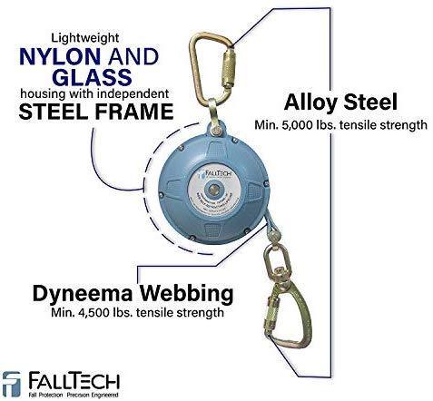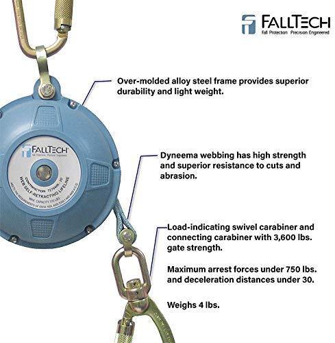 FallTech 7276WR Contractor/Dyneema Web SRL- Glass-Filled Nylon Housing, Dyneema Web, Connecting Carabiner, Load-Indicating Swivel Carabiner, 20', Blue