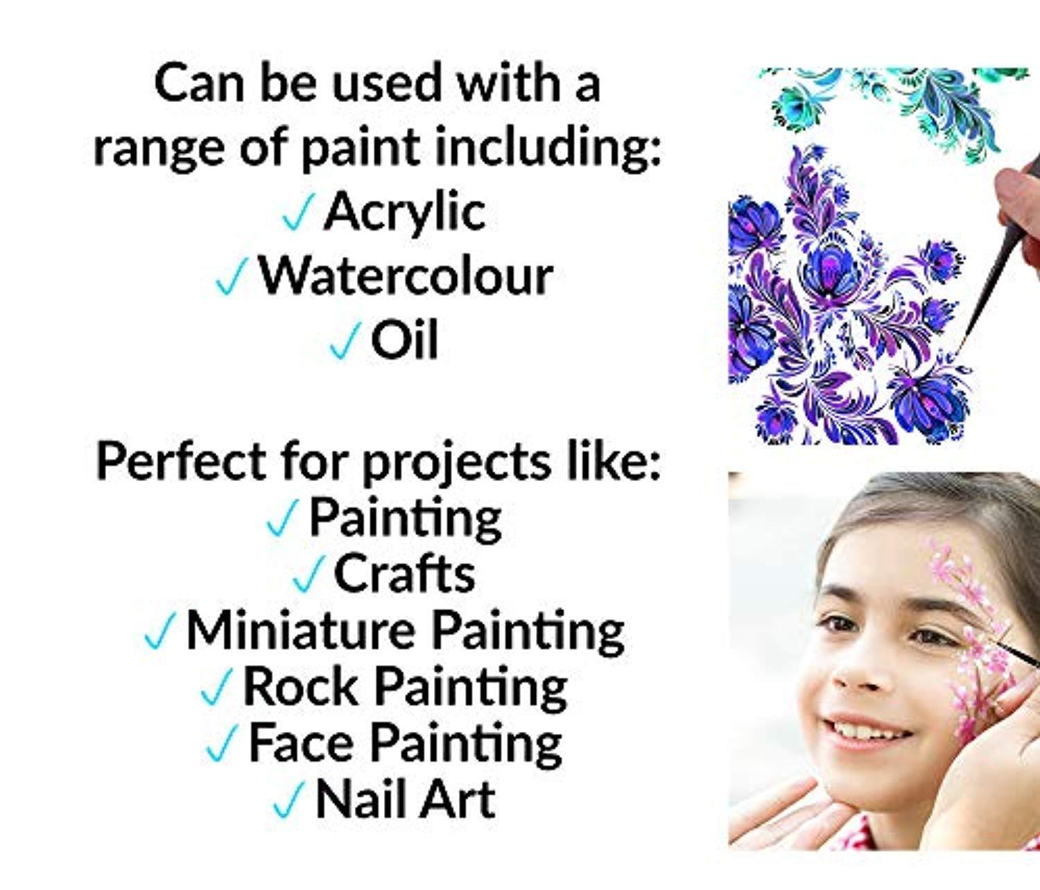 ERGONOMIC DESIGN THAT PREVENTS HAND CRAMPS: If you've been looking for a paint brush set best suited for figurines, action figures, dolls, nails, face painting, or dollhouses, then your search is over! That's because our brush set has ergonomically designed, birchwood handles that are ideal for balance and control while making sure your wrist or hand won't cramp up. Because you'll be able to paint longer and with more control that means you'll have better detail painting!