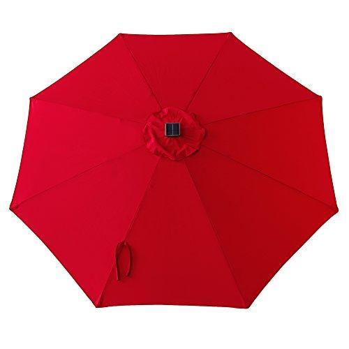 LED LIGHTING FROM THE SUN ≈ Dual switched hub light and 40 individual rib lights. Powered by a solar rechargeable battery. QUALITY FABRIC ≈ 200gsm solution dyed polyester provides all-round durability at an affordable price. To purchase a PROTECTIVE UMBRELLA STORAGE COVER search B06XTZ76YG.