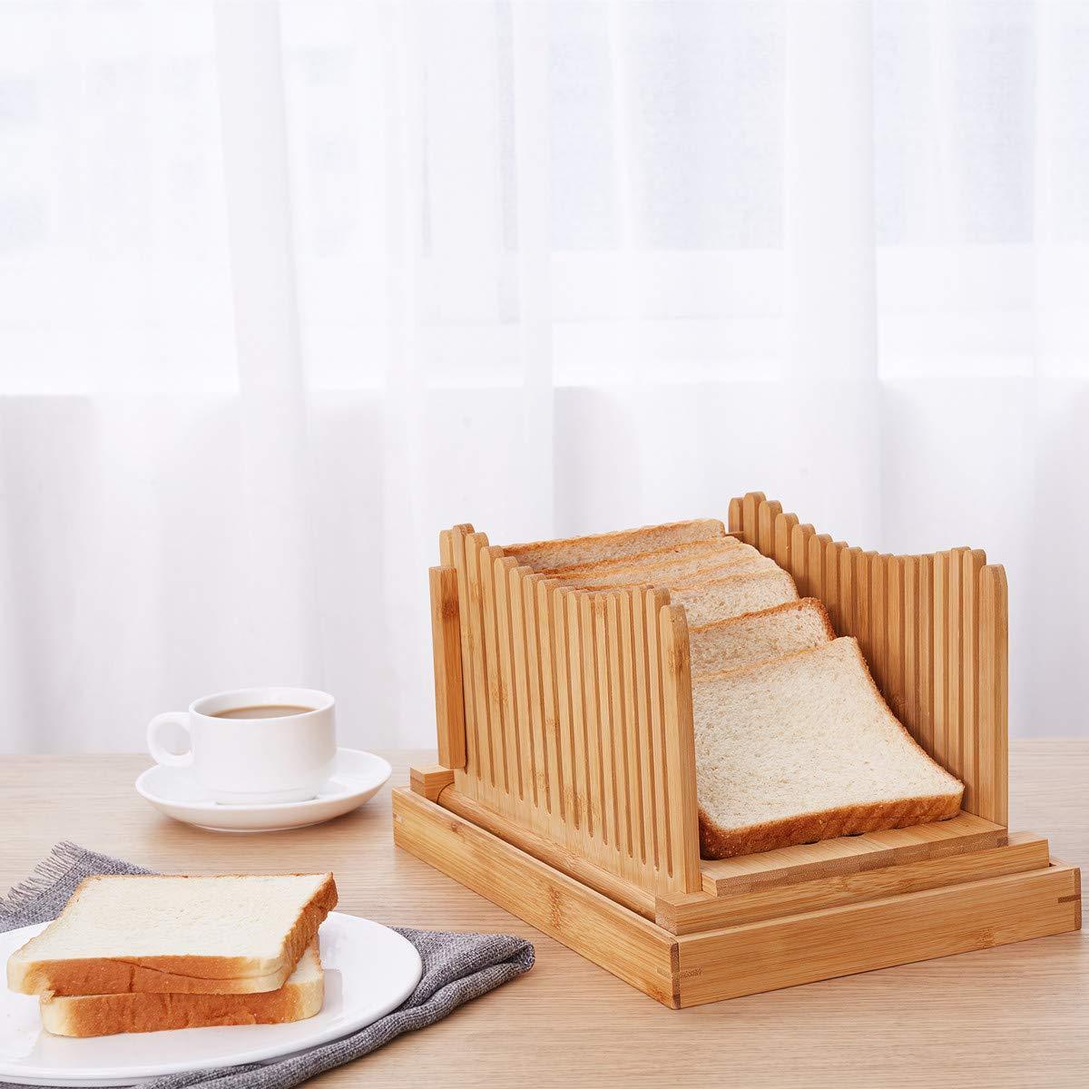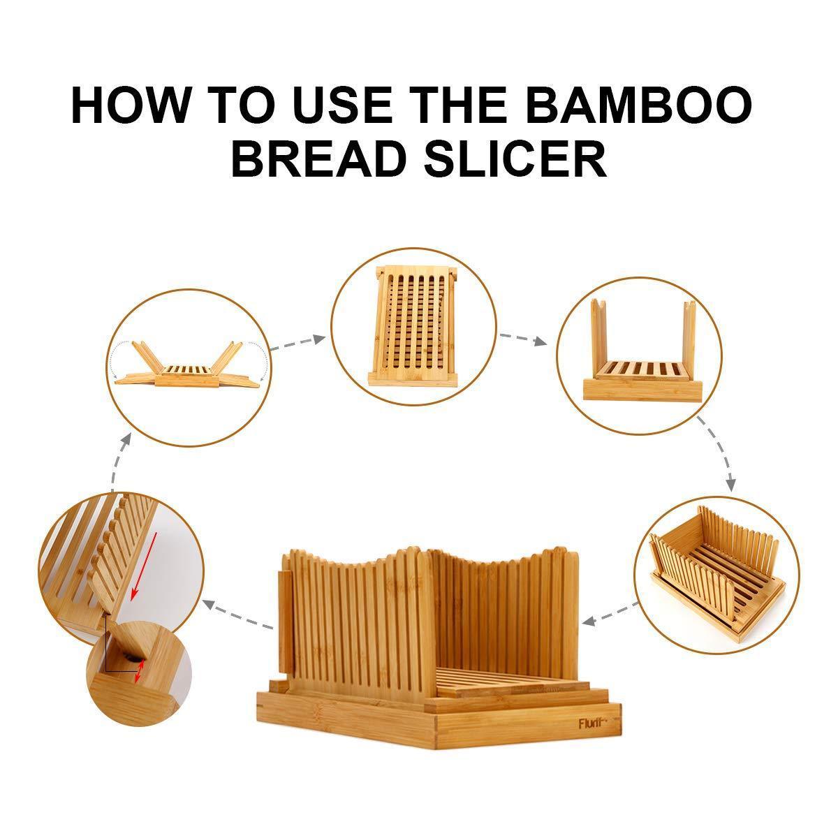 Flurff Bamboo Bread Slicers for Homemade Bread, Compact Foldable Bread Slicer Guide, Bagel Slicer