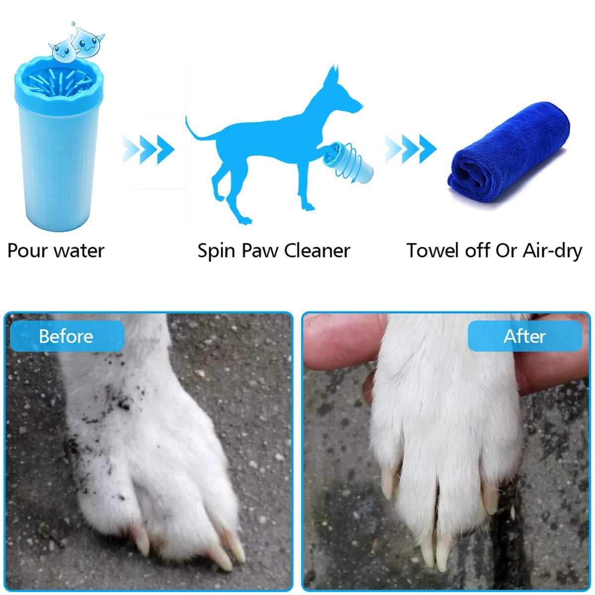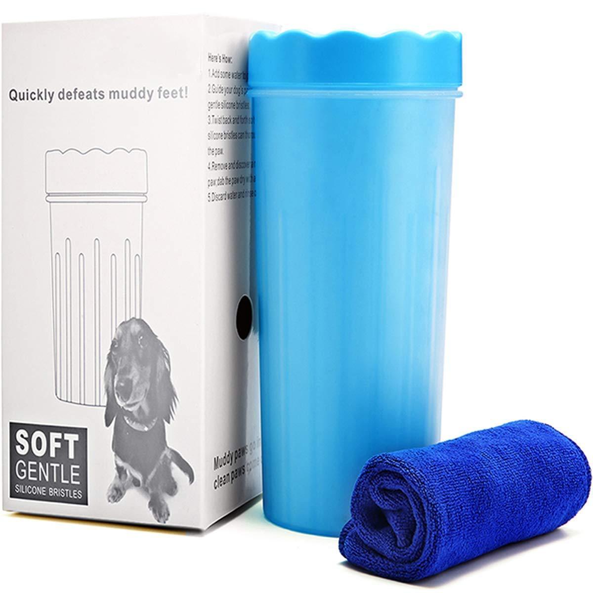 FOCUSPET Portable Dog Paw Cleaner, 9 Inch Large High Soft Silicone Pet Foot Washing Cleaning Brush Cup with 11.8 x 11.8 inch Towel