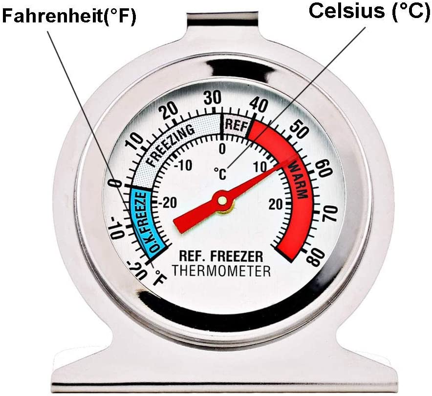 FOHO Durable Steel Refrigerator-Freezer Thermometer - Monitors The Internal Temperature of Your Refrigerator or Freezer, Hooks or Stands Alone