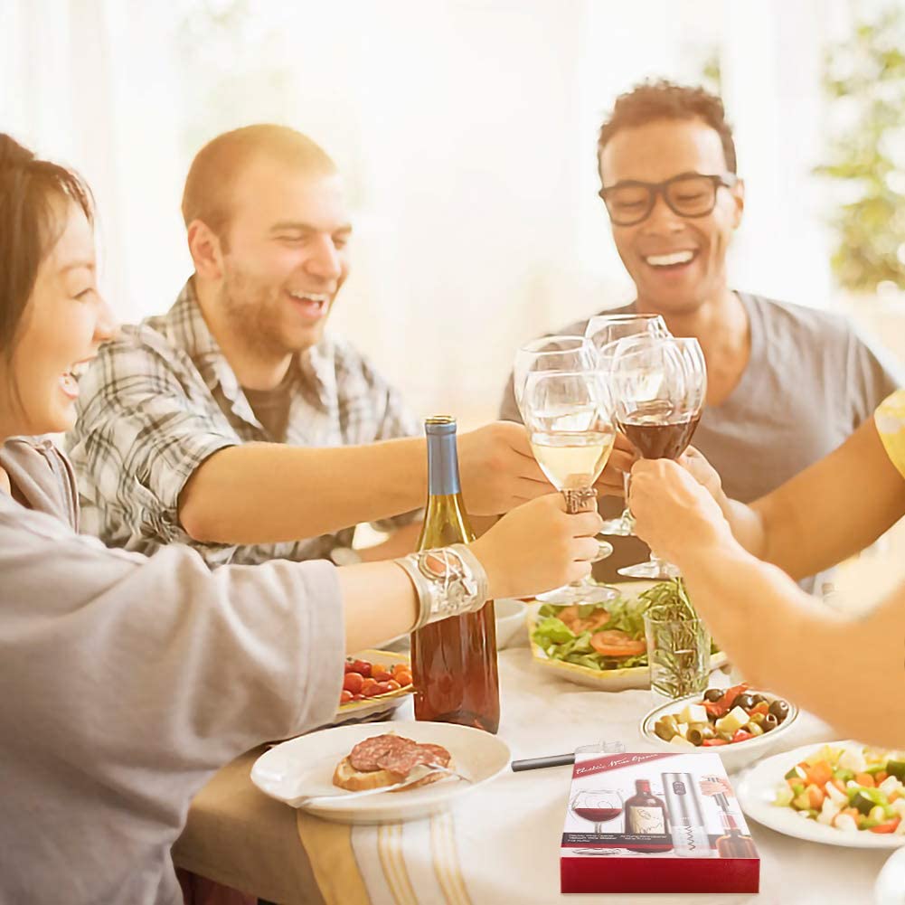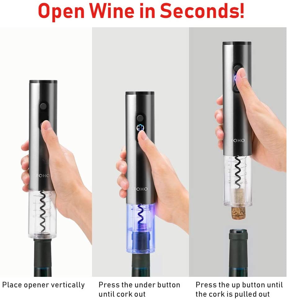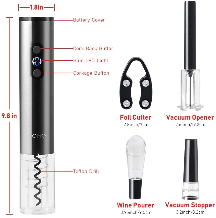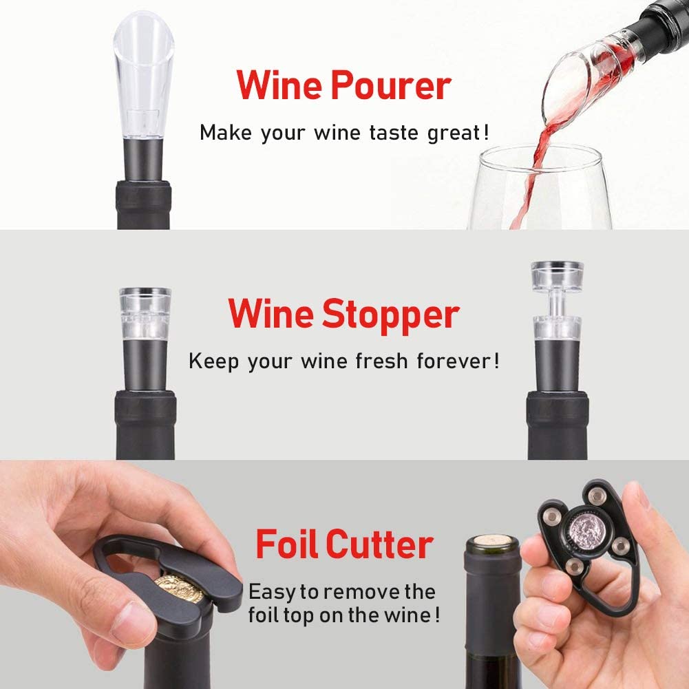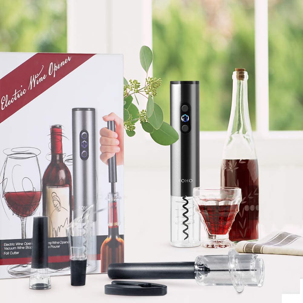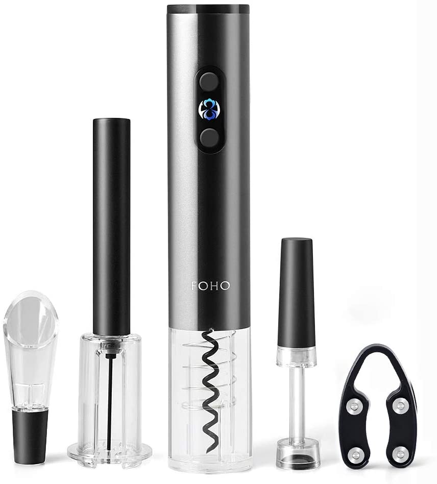 FOHO Electric Wine Opener, 6 in 1 Cordless Automatic Corkscrew Set, Gift Box contains Air Pressure Wine Opener, Foil Cutter