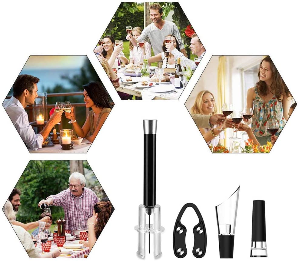 FOHO Wine Bottle Opener, Wine Air Pressure Pump Bottle Opener with Foil Cutter, Aerator Pourer and Vacuum Stopper - Simple Wine Cork Remover Wine Tool Accessory