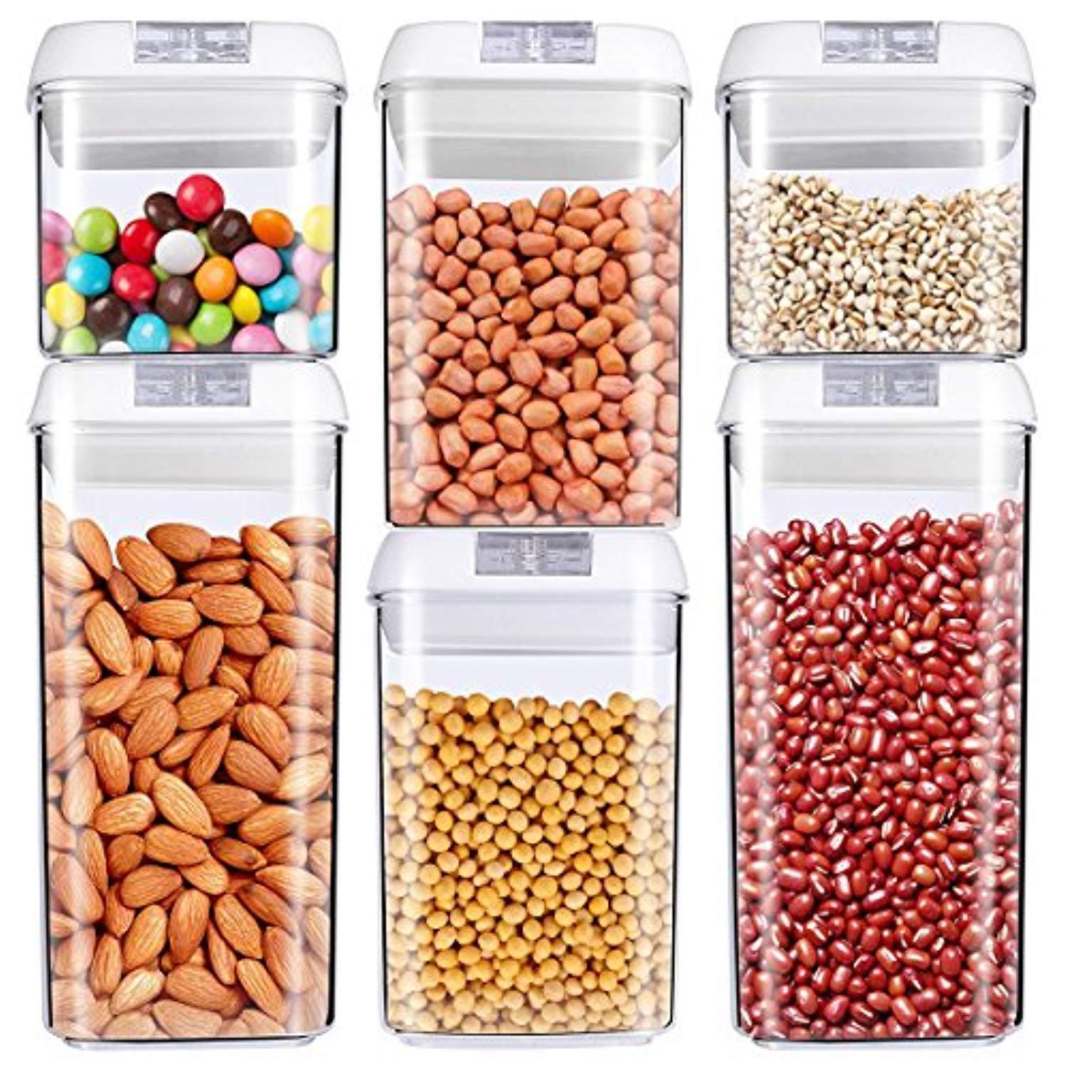 Food Storage Container, MCIRCO Air-Tight Cereal & Dry Food Storage Set- 6 Piece Set with Free 20 Pcs Chalkboard Labels - Food Grade Durable Plastic BPA Free - Keep Food Dry & Fresh with Easy Lock