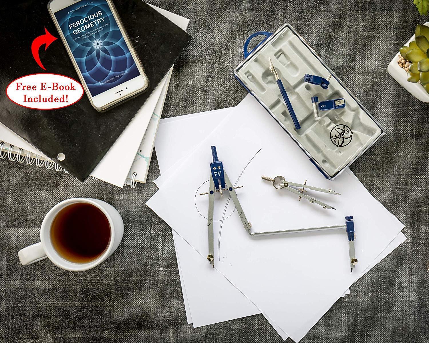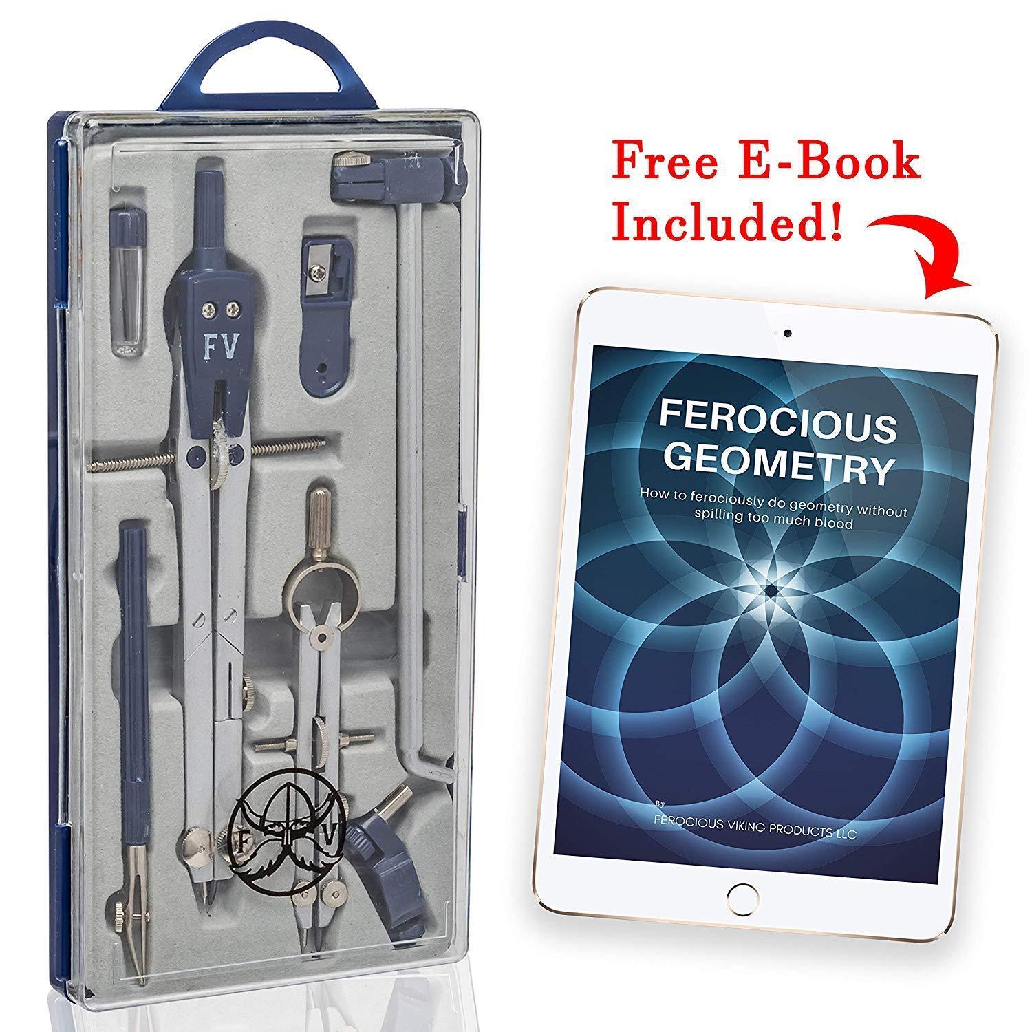 Geometry Compass Set by Ferocious Viking, Combination Compass Set for Solid and Plane Geometry Precision Tool for Drawing, Drafting, Math and Geometry with Beam Extension Bar