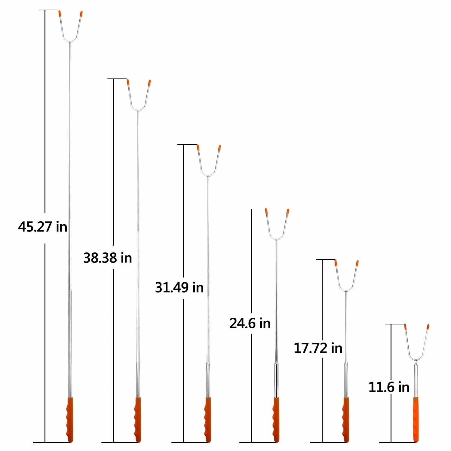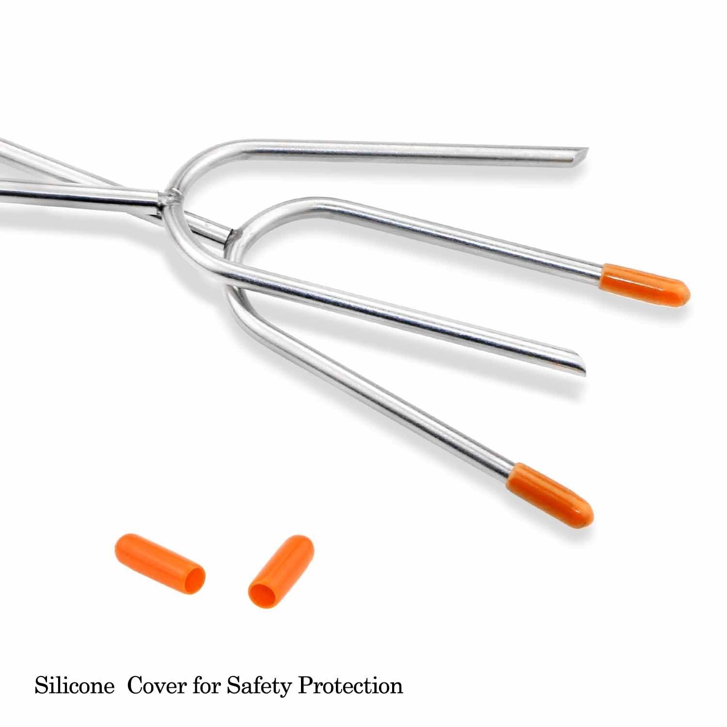 EXTENDABLE OF THE FORK’S LENGTH: 45 inch extra-long extendable telescoping forks and it can adjust the length according to your need and keep you and your kids at a safe distance from the fire pit. Sharp tips are protected with rubber, which makes them be perfect for children and let them a must for BBQ.