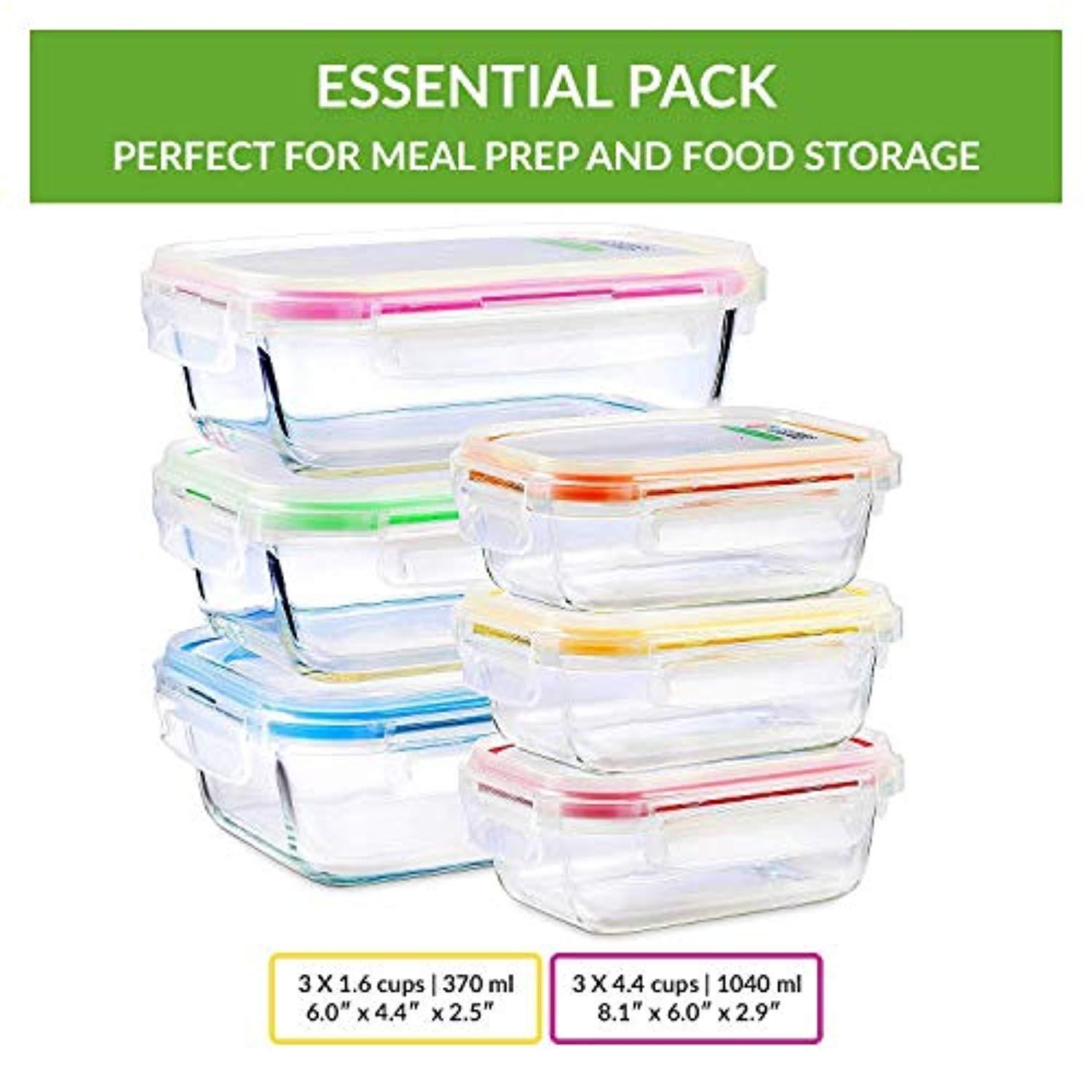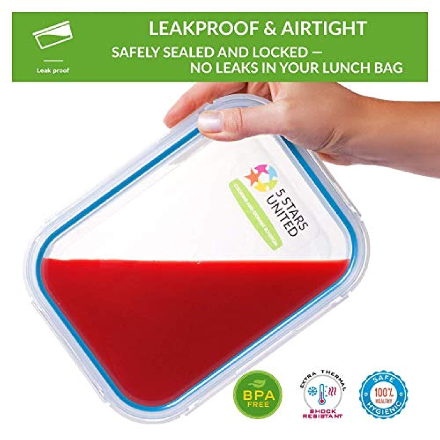 Glass Food Storage Containers with Lids - 6 Pack, 2 Sizes (35 Oz, 12 Oz) - Meal Prep Lunch Boxes - Microwave, Fridge, Freezer, Dishwasher, Oven Safe - BPA-free - Easy Snap, Airtight and Leakproof Lid by 5 STARS UNITED