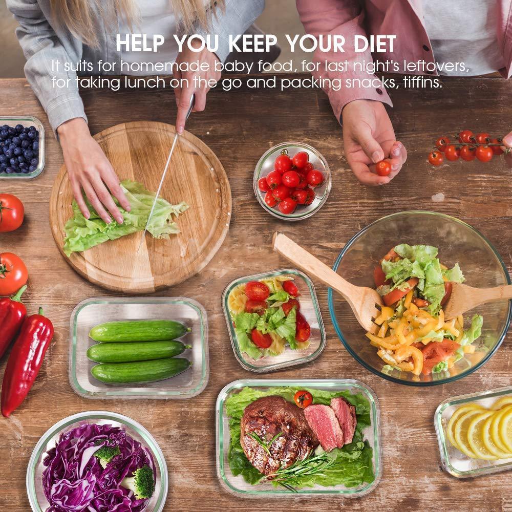 Glass Storage Containers with Lids (9 Pack) Send 2PCS Microfiber Cleaning Cloths Meal Prep Glass Food Storage Container Set Lunch Glass Boxes Masthome