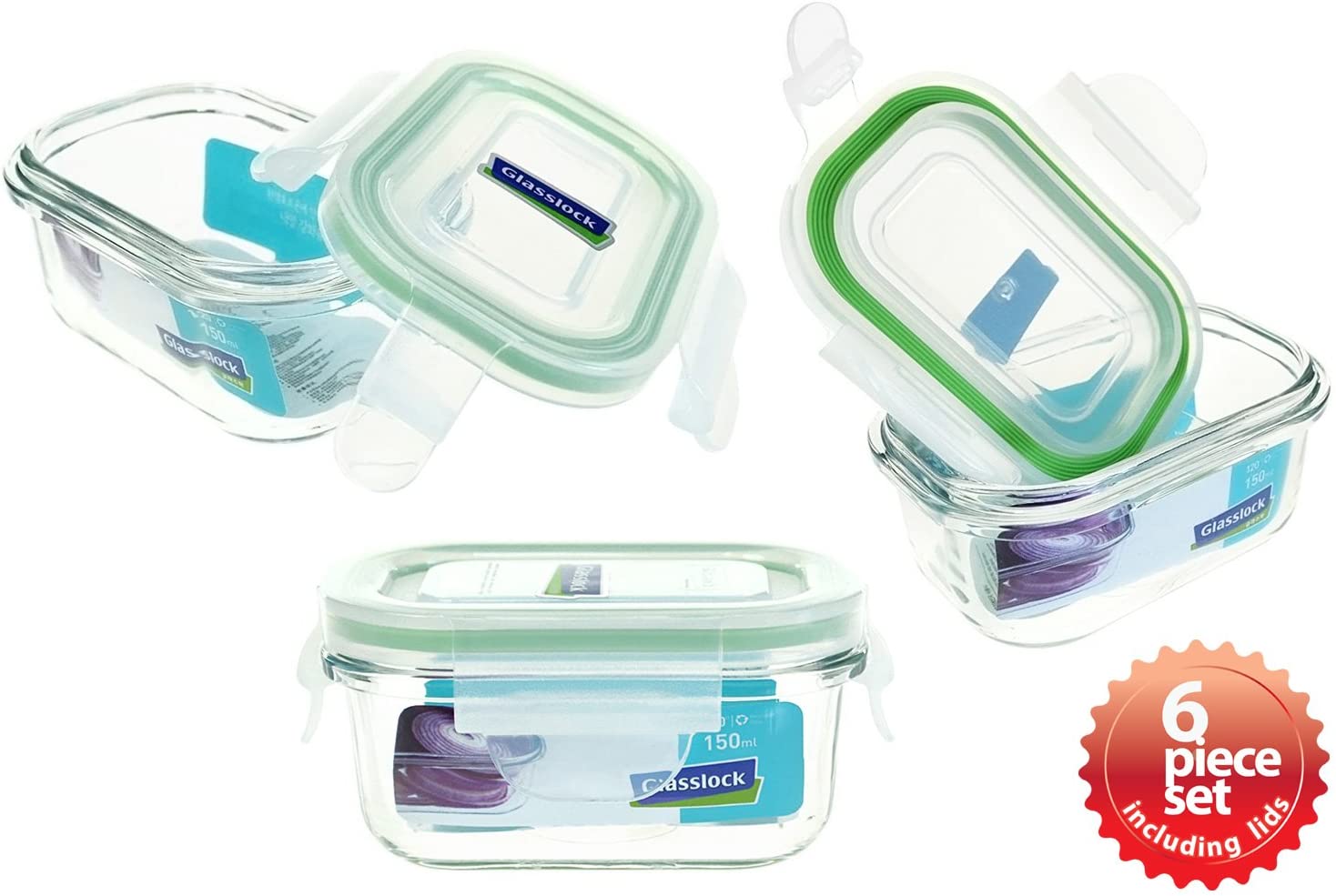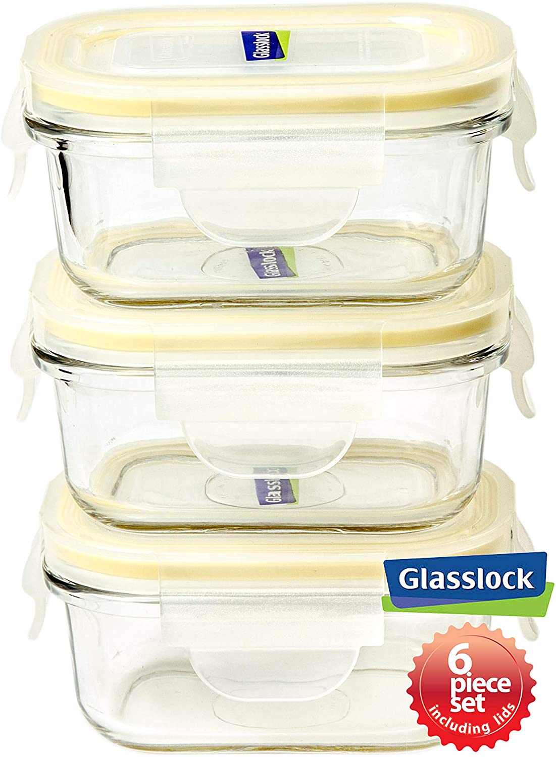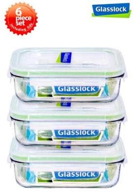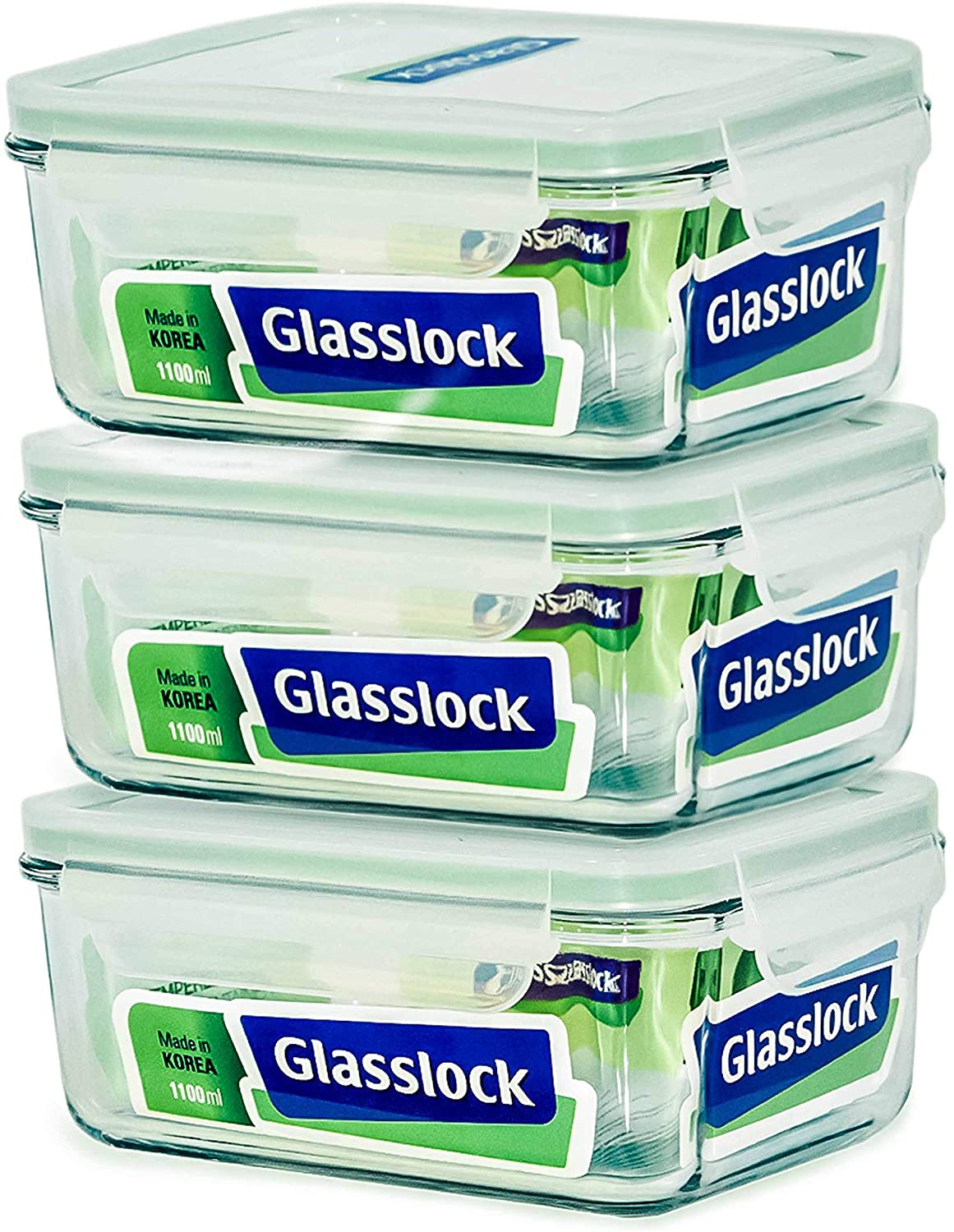 100% Recyclable eco-friendly Food Storage Container All-Natural Glass Vessels with Airtight Lids Spillproof, shatter resistant, dishwasher, freezer, refrigerator and microwave safe Silicone gasket locking system and impermeable polypropylene containers keep out oxidizing Patented manufacturing process reduces odor and staining and is BPA and FDA approved Package Includes - 3pcs Glass Rectangular Container 37oz/1100ml ea. and 3pcs plastic lids - Total of 6pcs Set