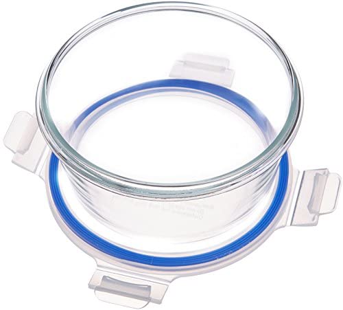 Round containers include: 1.29 cup (2), 3.0 cup (1) Locking lid with silicone ring prevents unwanted spills Glass base is non-porous making it easy to clean, resistant to corrosion, and does not absorb stains or odors Glass base is oven save up to 752 F, as well as refrigerator, freezer, microwave, and dishwasher safe (make sure to not subject the glass to extreme temperature changes) Plastic lid is microwave safe (make sure lid allows for venting), freezer, and top rack dishwasher safe