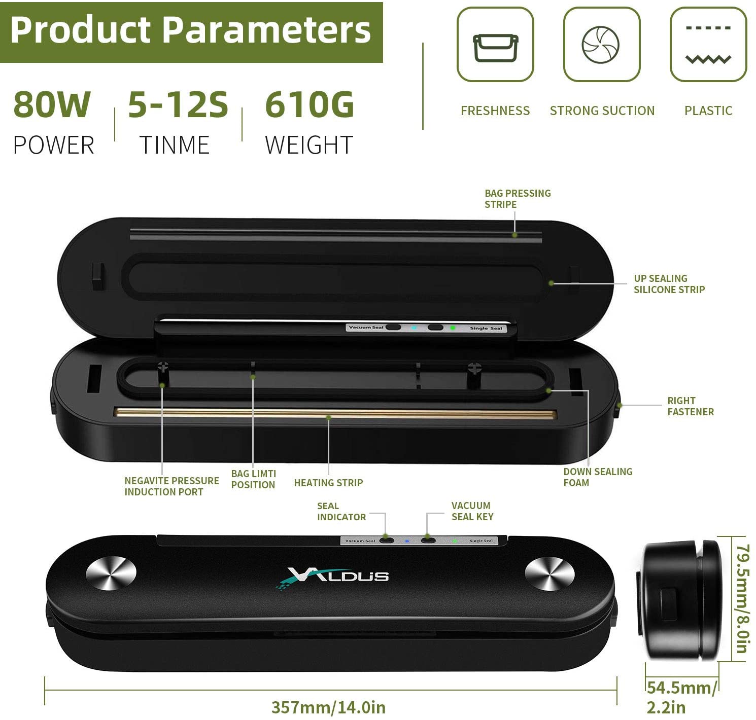 GOGING Black Vacuum Sealer Machine with 20 Pcs Vacuum Bags Automatic Food Sealers Machine Vacuum Packing Machine for Food Preservation Storage