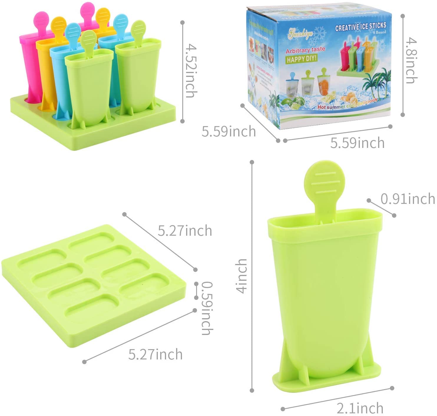 【FOOD GRADE PP MATERIAL】LEEFE ice popsicle molds are made of food grade PP materials, 100% BPA free, reduces waste with eco-friendly, reusable design. You can use them again and over again in the freezer for years.【EASY TO USE & CLEAN】The popsicle maker are designed for easy to pull out and clean, and it can stand firmly than others. The popsicles can be easily removed by running warm water over the mold for 15-20 seconds.【HOMEMADE POPSICLE MAKE】This 8 piece ice pop molds are fun and easy for kids to use, you can use milkshake or juice to makes delicious and healthy fruit ice or simple sugary snacks, kids will love it.【COLOURFUL POPSICLES MOLD】Brightly coloured and full of fun. You can create your own unique frozen treats using juices, yogurt, fruit, pudding, jams and jellies. It is an excellent gift for your friend or little kid.【POPSCLE MOLDS SETS】Each pack have 8 molds, 4 colour (Green, Blue, Red, Yellow), measures 6 x 5.5 x 8 inches. Each mold holds about 70 ml liquid. The molds place into the boxes for all can easily be transported to the freezer.