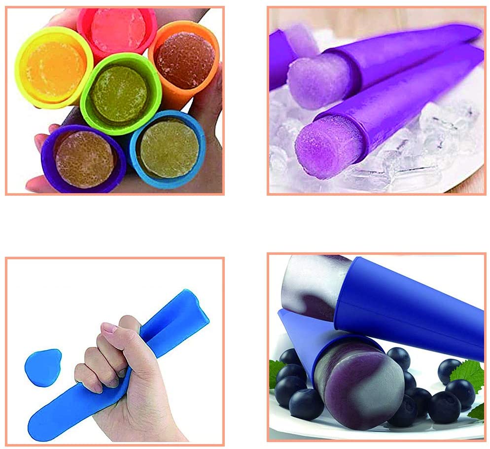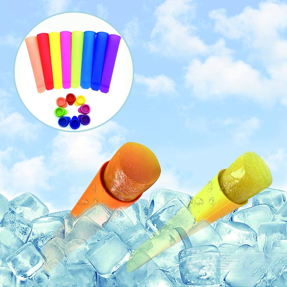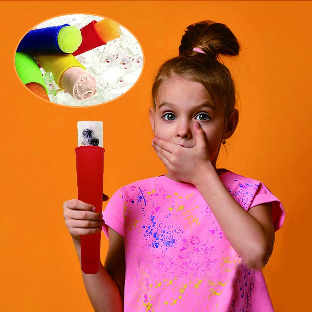 ☛COLORFUL AND FUN:The silicone popsicle molds have 8 different bright colors, which come in red, orange, yellow, green, pink, blue, navy blue, purple.Different and Interesting colorful popsicle mold makes a profound impression of your family and guests.