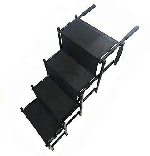 Golden Coast Unlimited Dog Car Accordion Folding Stairs - Metal Frame Collapsible Pet Ramp with Four Steps - Lightweight, Portable, Adjustable Ramp Ladder for Car, SUV, Truck, Couch, Bed