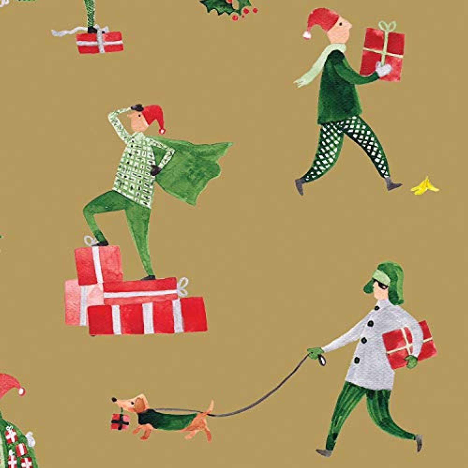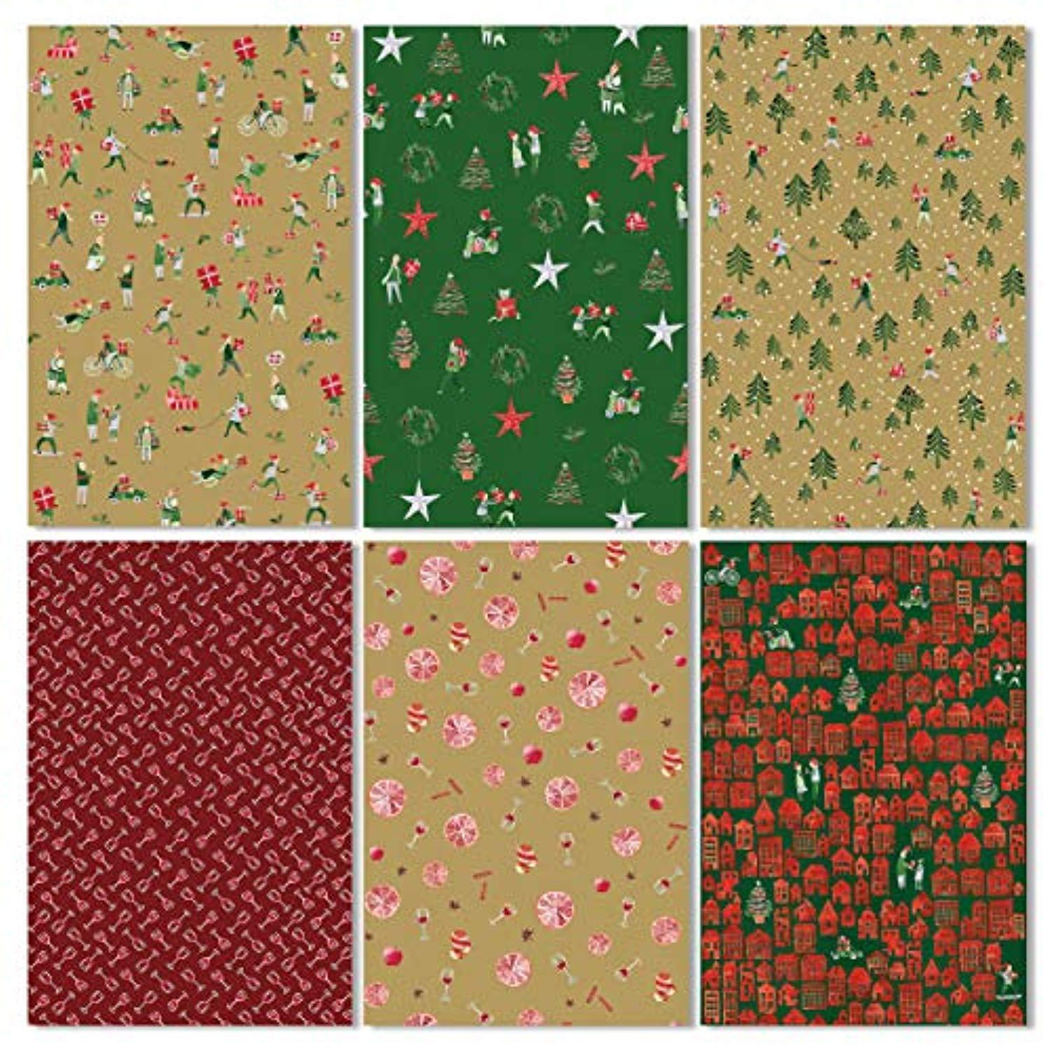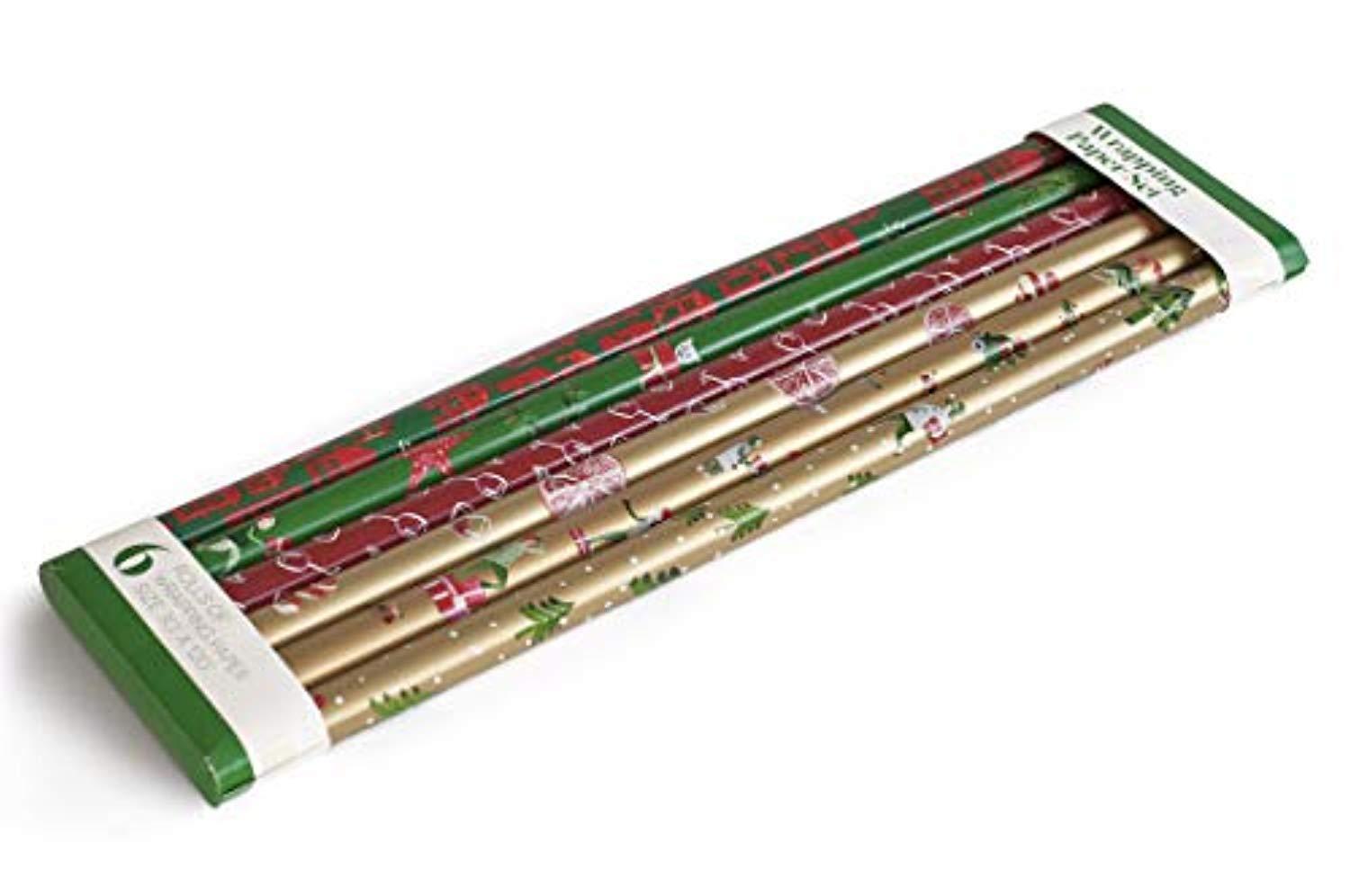 Golden Gift Wrapping Paper Set – 6 Rolls Bundle of Wrap Paper Size 30” x 120” per Roll – Gift Joy Theme with 6 Special Designs