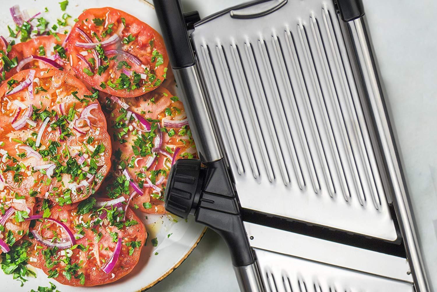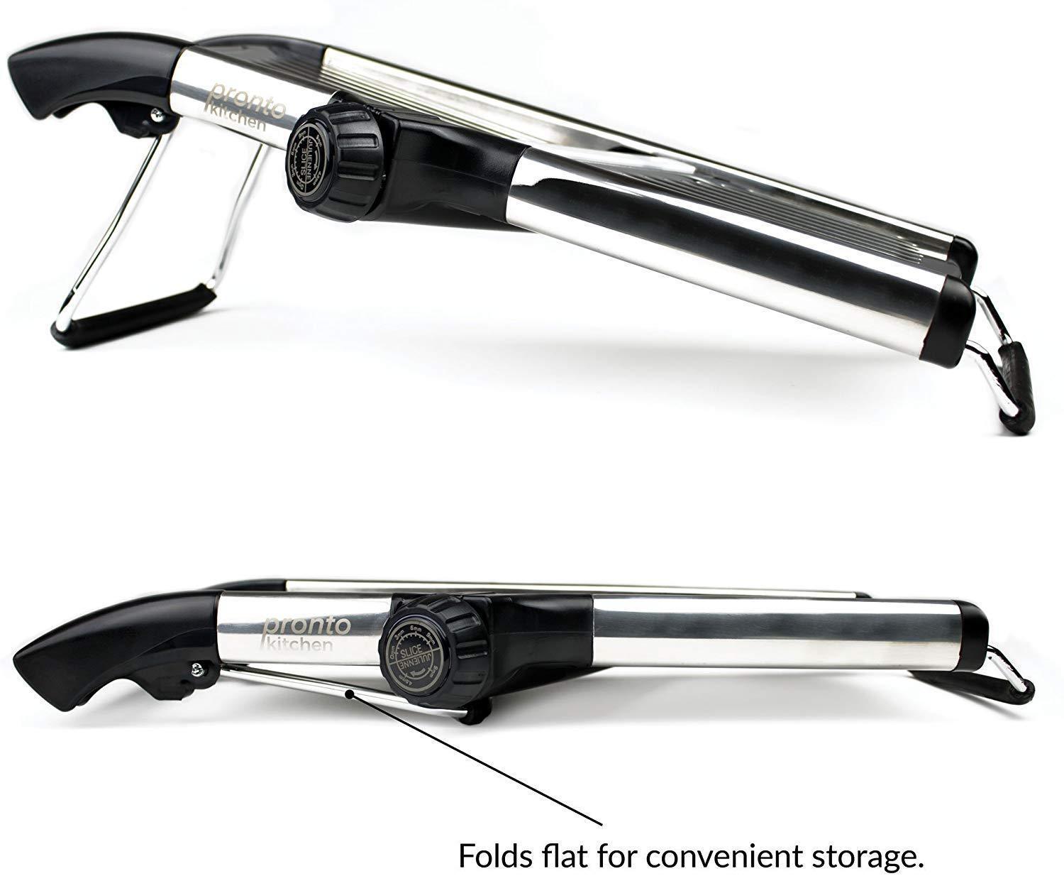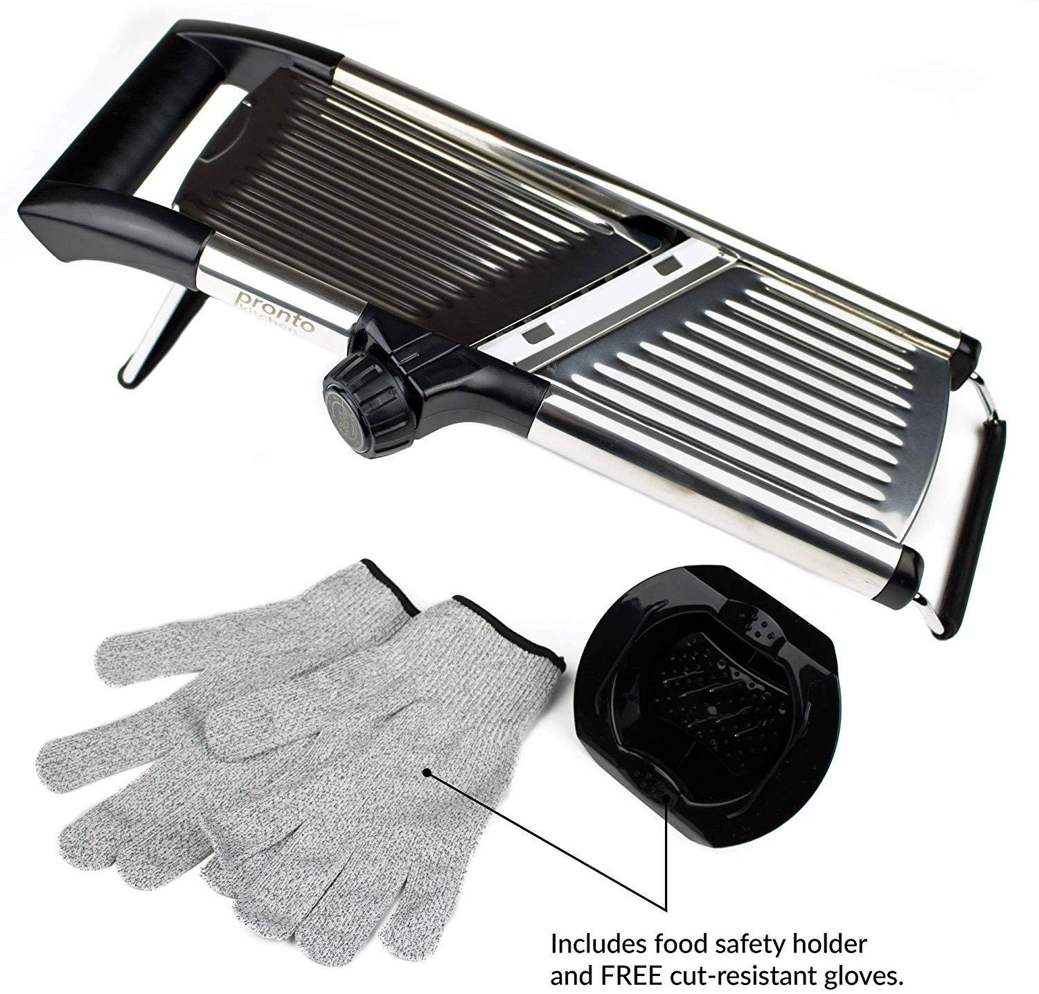 Gramercy Kitchen Co. Adjustable Stainless Steel Mandoline Food Slicer - Comes with One Pair Cut-Resistant Gloves || Vegetable Onion Potato Chip French Fry Julienne Slicer