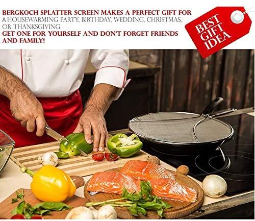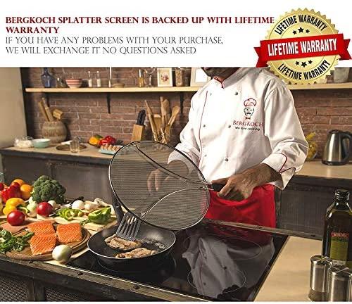 LIFETIME GUARANTEE: Heavy duty stainless steel construction is crafted with the same essence as all German kitchenware to last for years, so the BergKoch Splatter Screen for cooking is backed up with hassle-free LifeTime Warranty - If you have any problems with your purchase, we will exchange it no questions asked.