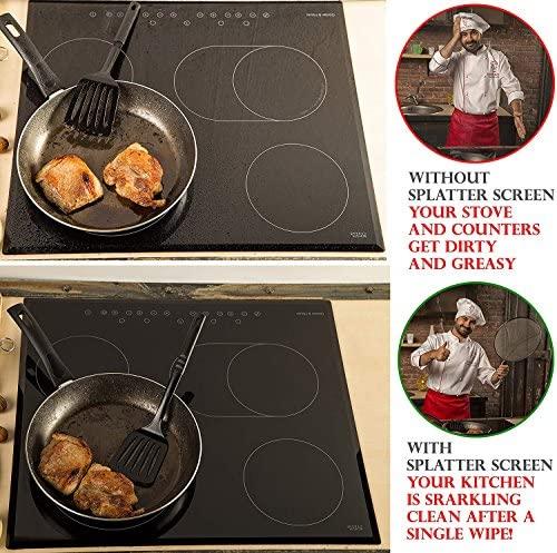 Resing feet keep kitchen clean and grease off your counters: Ergonomic feet conveniently keep the screen on your countertop without it getting greasy and keep it in place on top of the pan – Forget about a messy stove and greasy counters - Just give your countertops a wipe after cooking and your kitchen is sparkling clean