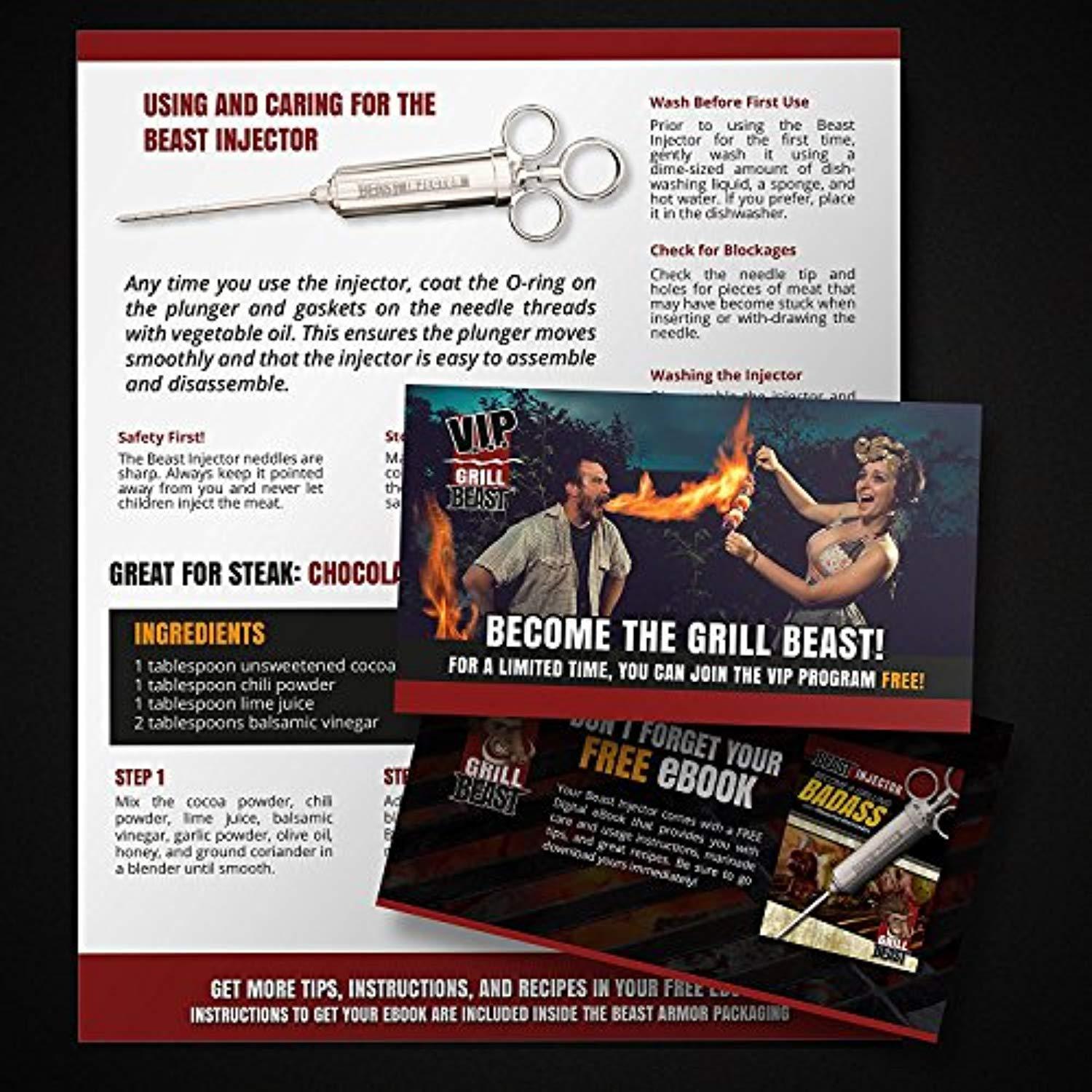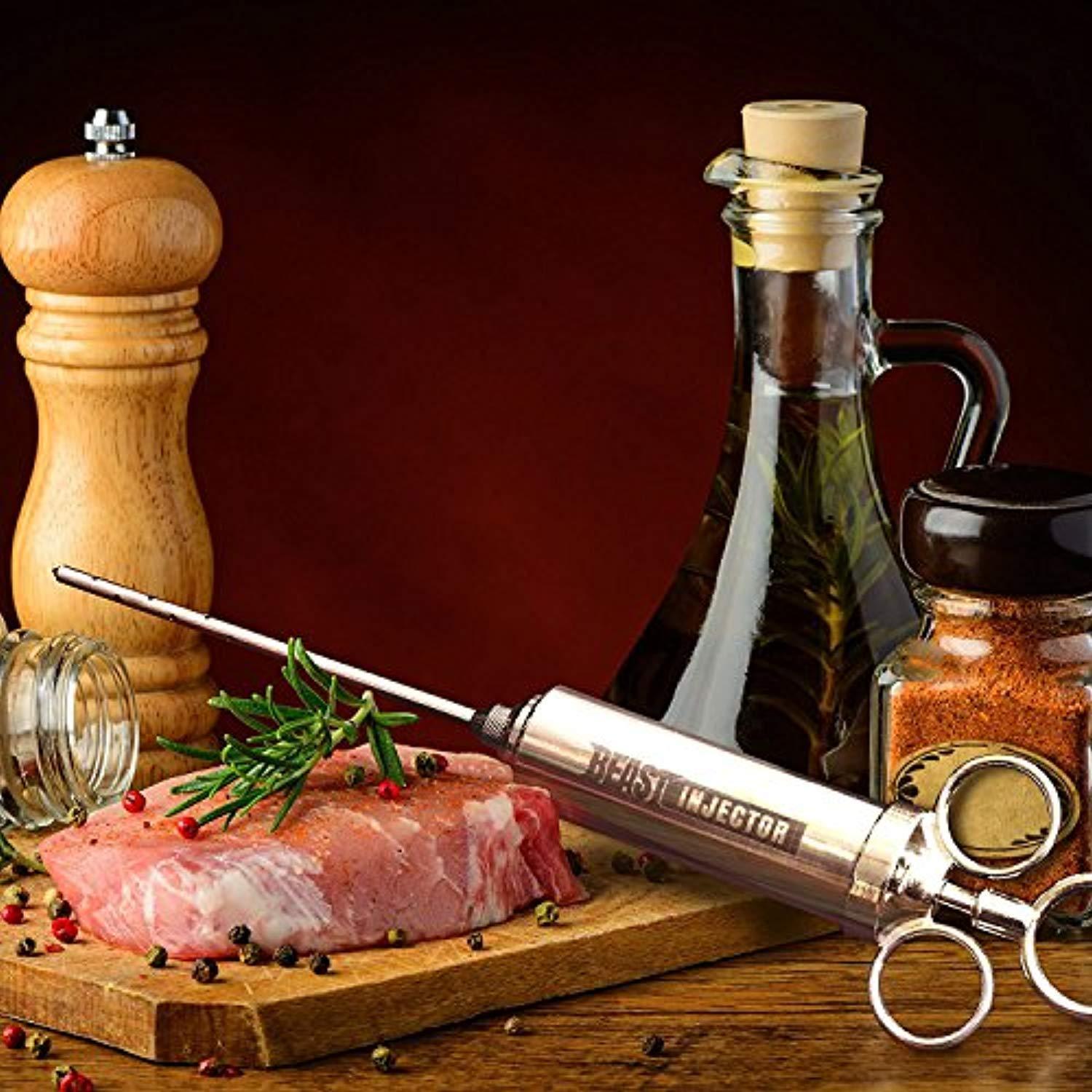 Grill Beast - 304 Stainless Steel Meat Injector Kit with 2-oz Large Capacity Barrel and 3 Professional Marinade Needles