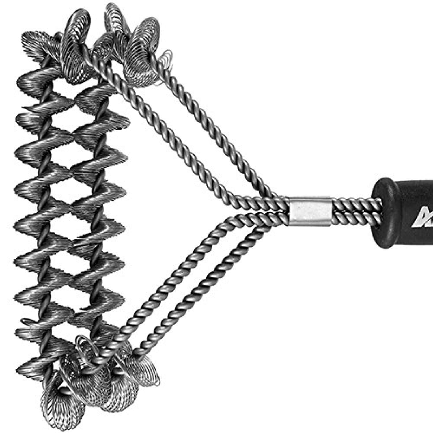 Grill Brush Bristle Free - Grill Brush - 18'' Rust Proof Triple Stainless Steel BBQ Grill Cleaner for Steel, Porcelain, Iron,Ceramic Grates