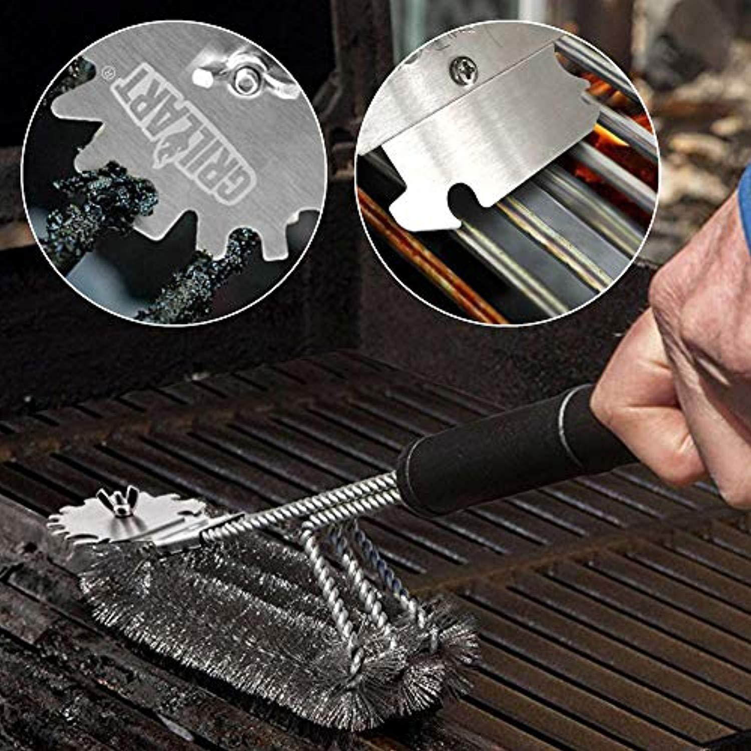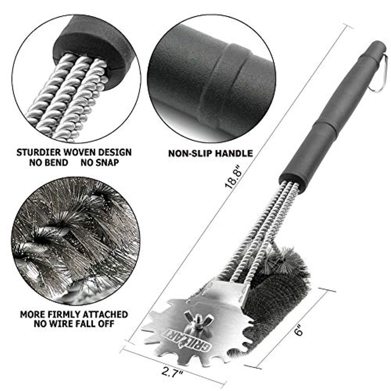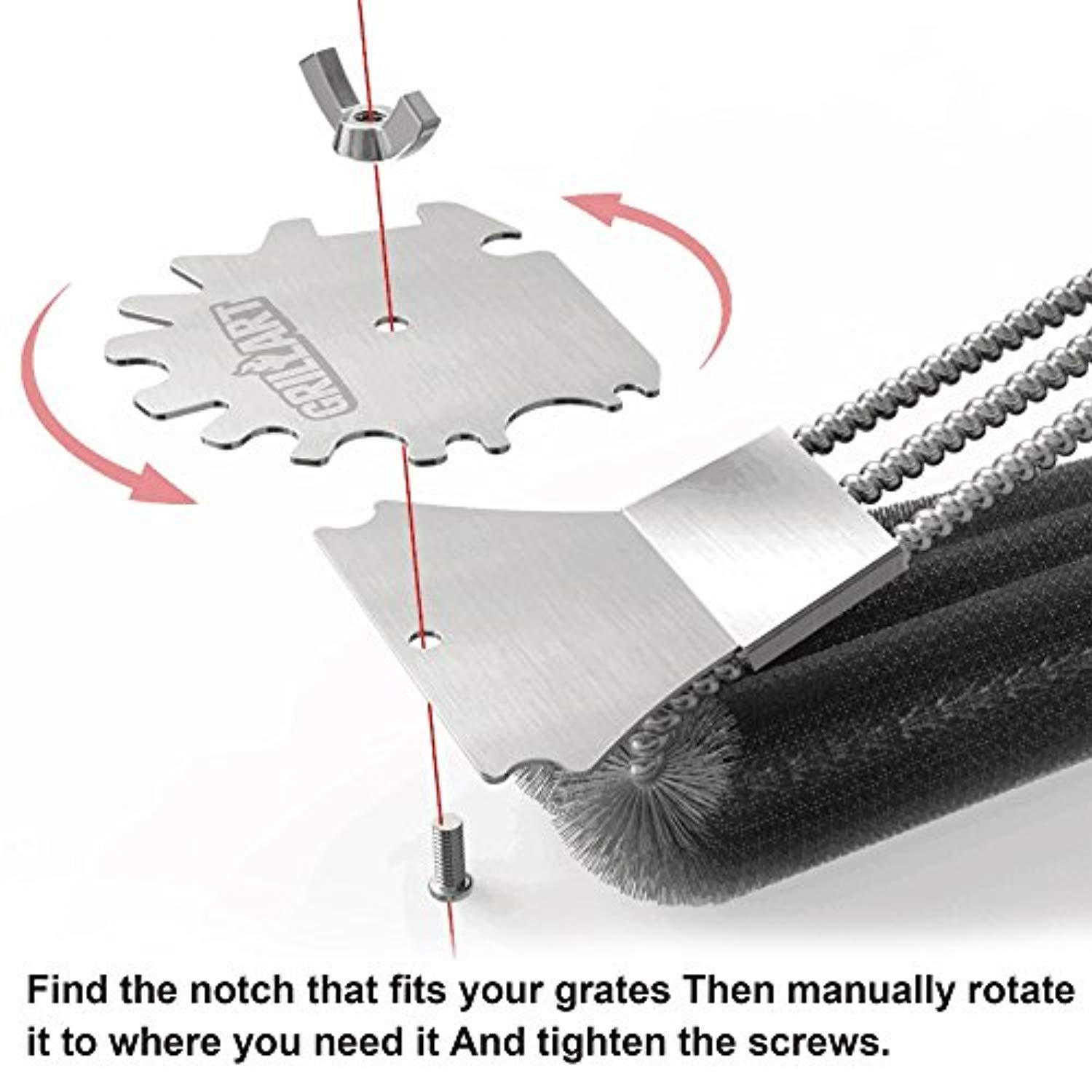 Grill Brush Scraper Universal Fit - Adjustable BBQ Grill Accessories Cleaning Kit - 12 Grooves Safe 18" Stainless Steel Barbecue Grill Cleaner Wizard Tools Weber Gas/Charcoal Grilling Grates