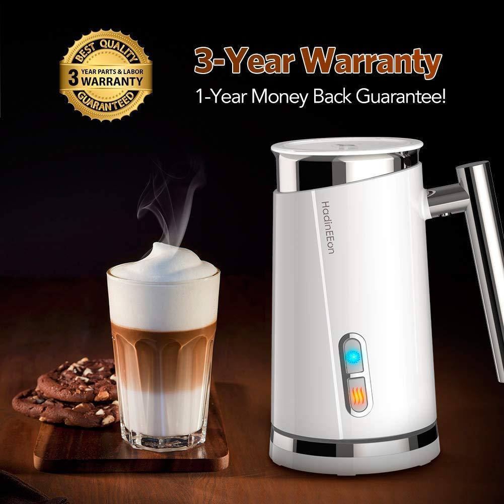 HadinEEon Milk Frother, Electric Milk Frother & Steamer for Making Latte, Cappuccino, Hot Chocolate, Automatic Cold Hot Milk Frother & Warmer (4.4 oz/10.1 oz), Coffee Frother Milk Heater (White)
