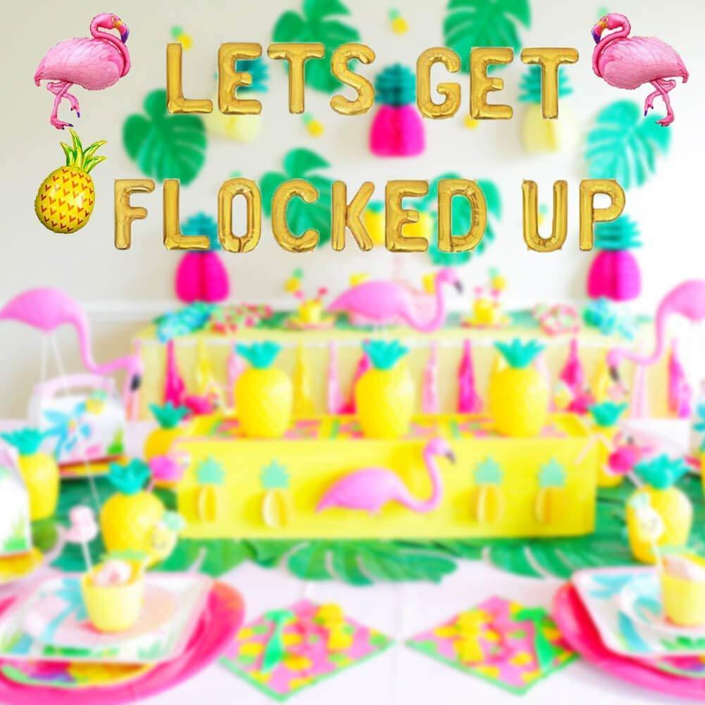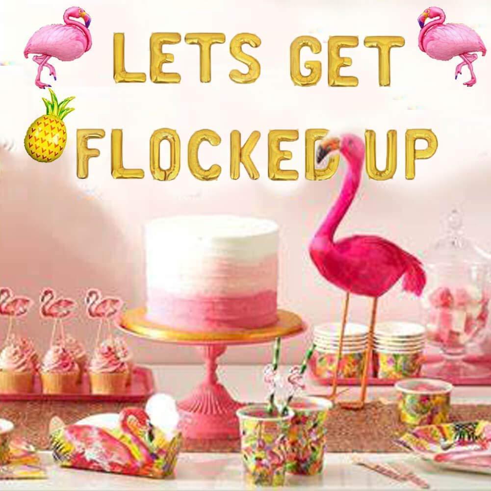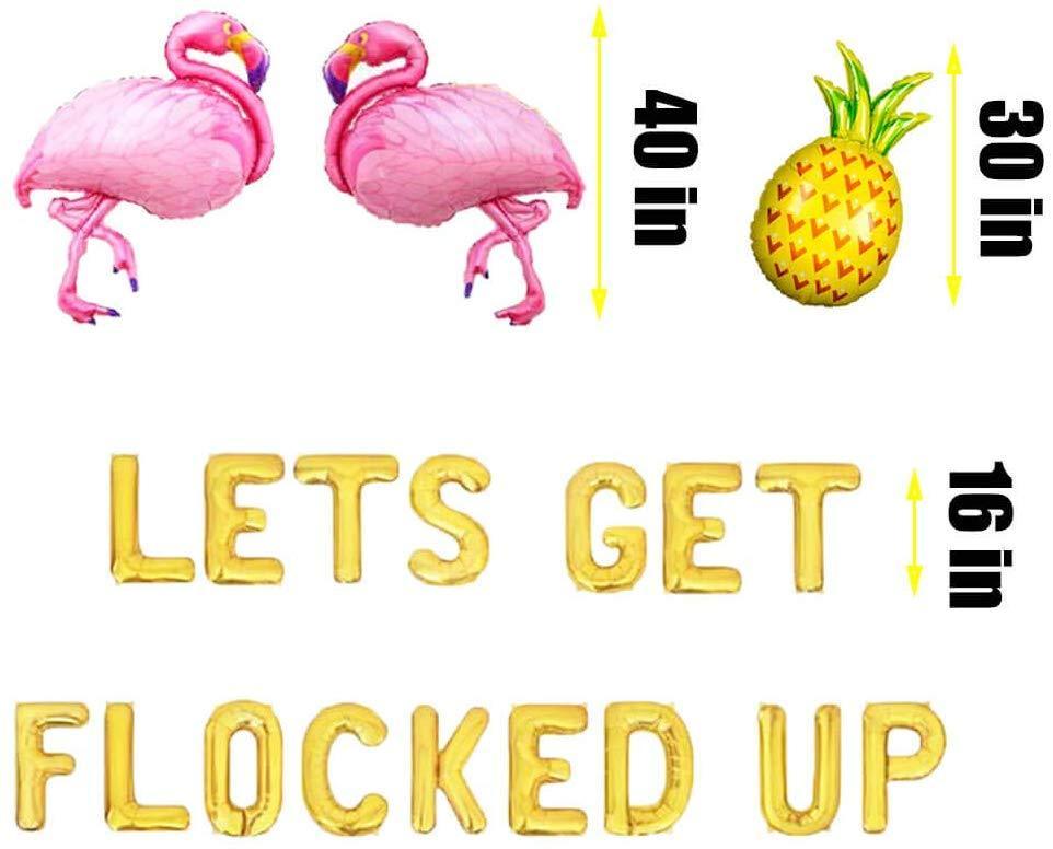 🍍SIZE - Each Letter Balloons length approx is 16",Flamingo Size: approx is 40",Pineapple Size: approx is 30". Get our Let's Get Flocked Up Balloons for Hawaii,Luau,Flamingo Theme Party,Bachelorette Party,Wedding,Birthday Party .