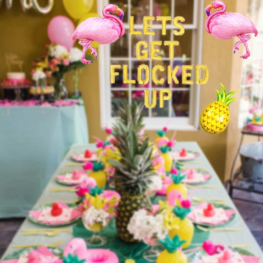 🍍PACKAGE: Includes independent "LETS GET FLOCKED UP" and 2 Flamingo Balloons, 1 Pineapple Balloon, 1 straw for inflating balloons, 1 string for hanging balloons.