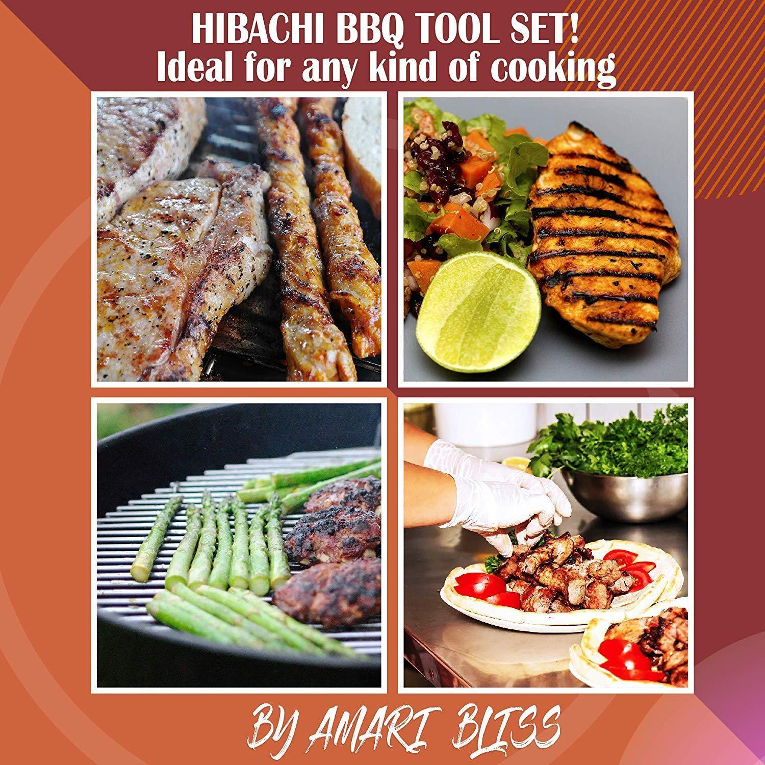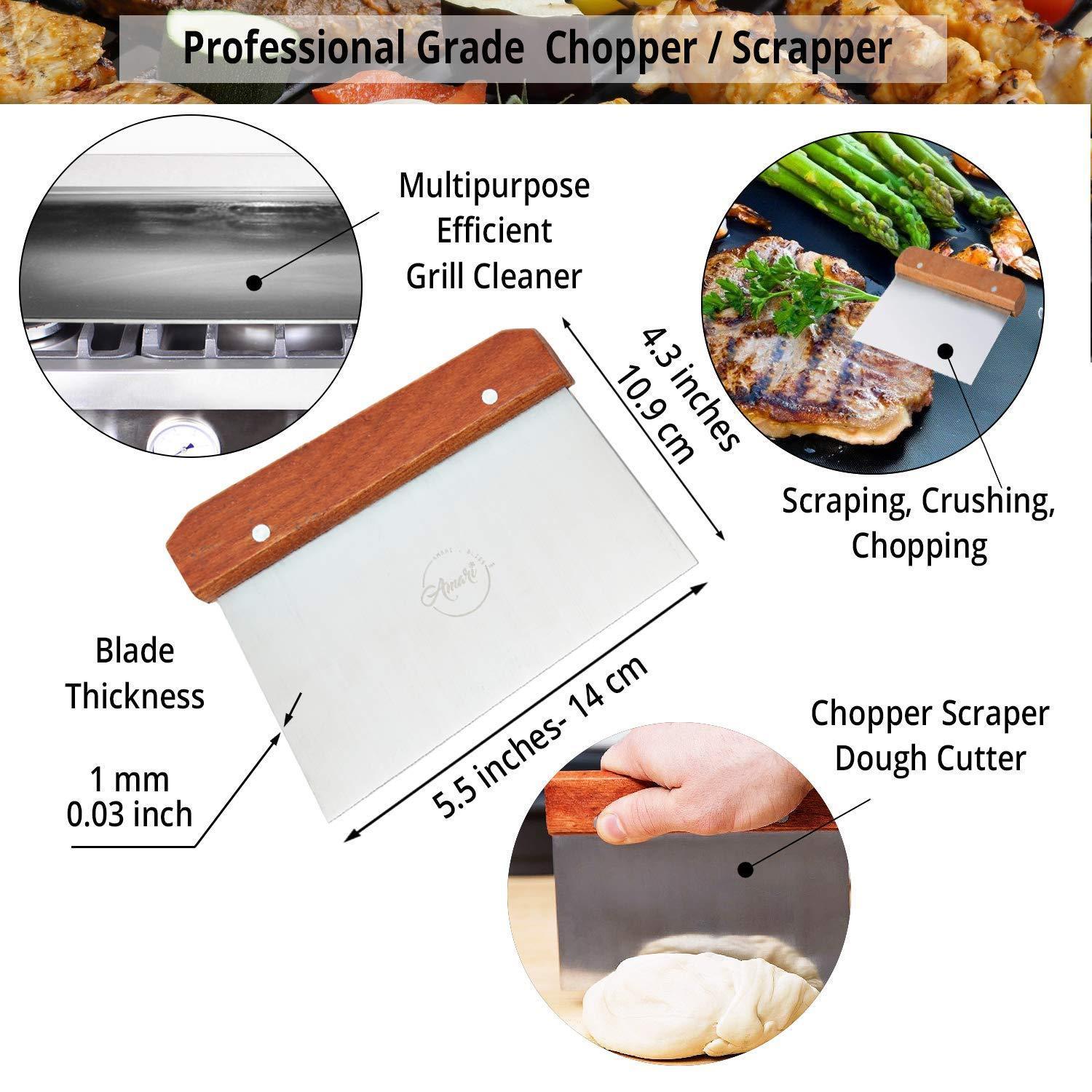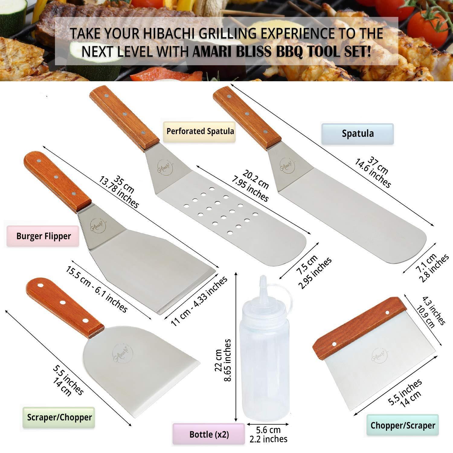 Hibachi Grill BBQ Accessories Griddle Spatula Flat Top Grill Tool Kit Metal Stainless Steel Spatula Set Hamburger Chopper Flipper Kitchen Utensil Set BBQ Grill Accessories Scraper Camping Accessories
