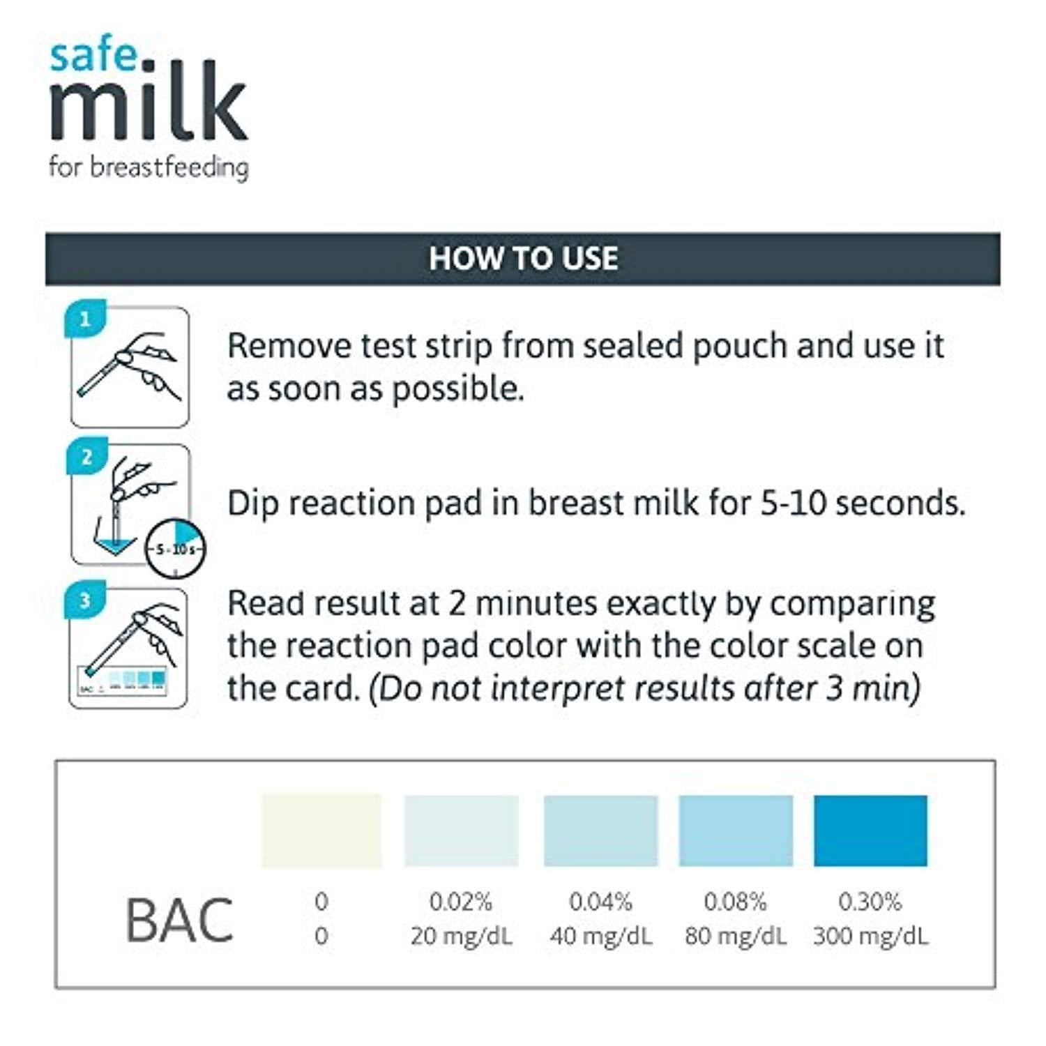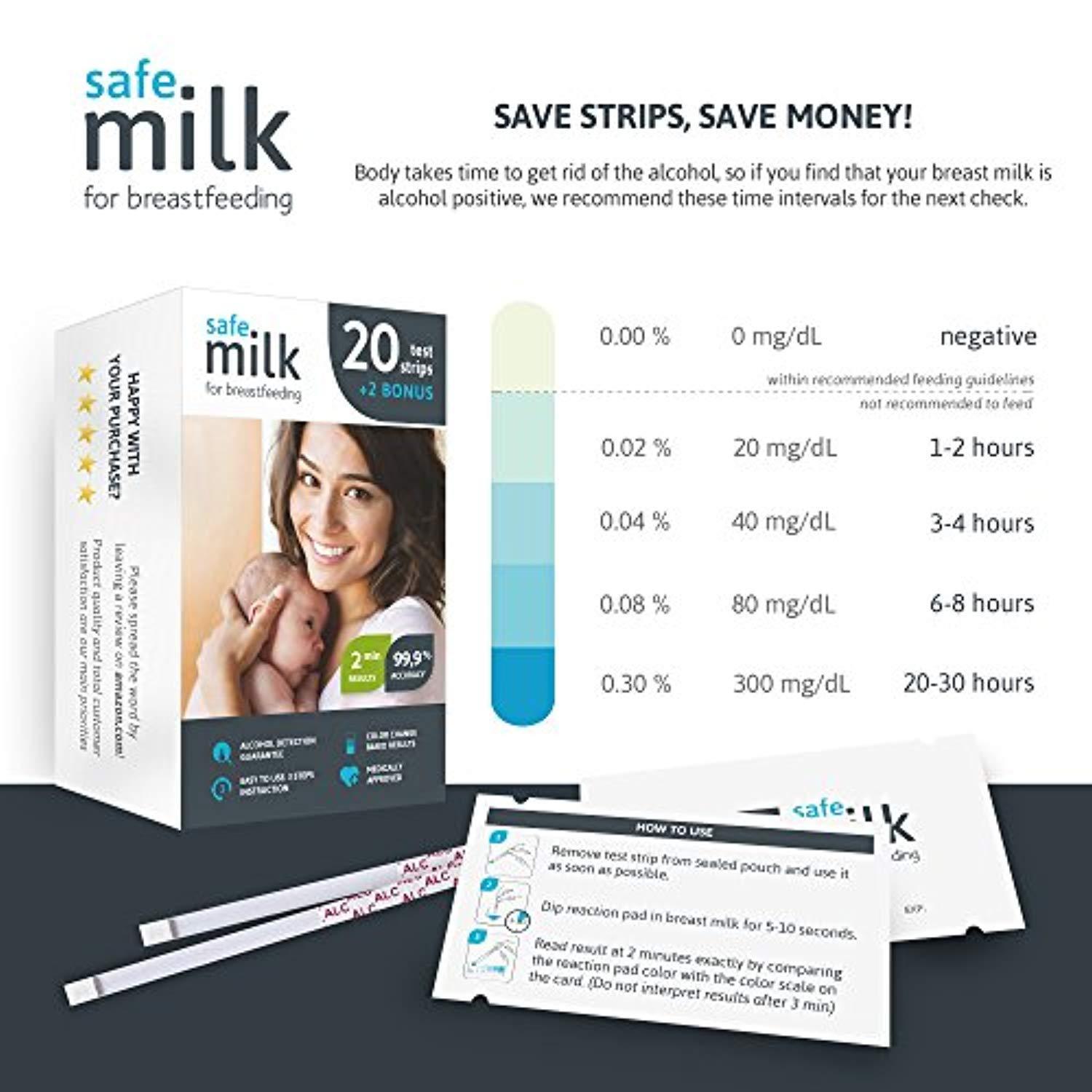 š NOT ONLY POSITIVE OR NEGATIVE BUT PRECISE RESULTS IN ONLY 2 MINUTES. The color represents the amount of alcohol in your milk. 2 minutes after the test is performed, place a test strip next to the color chart and find out an estimated amount of alcohol in your breast milk. The chart also shows you how much time is needed for the alcohol to disappear from your system. Better safe than sorry.