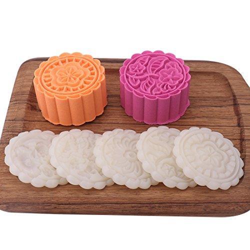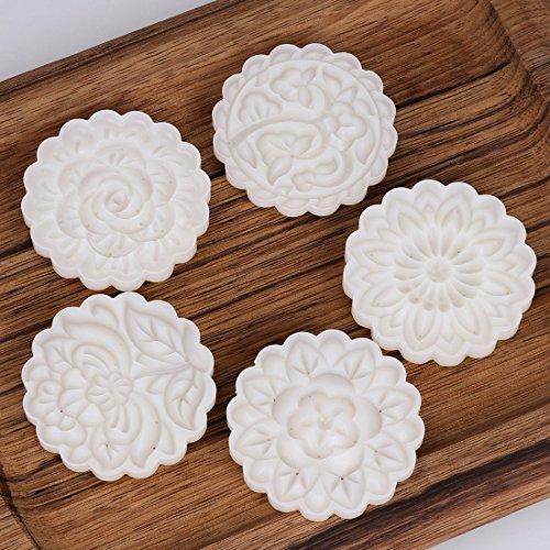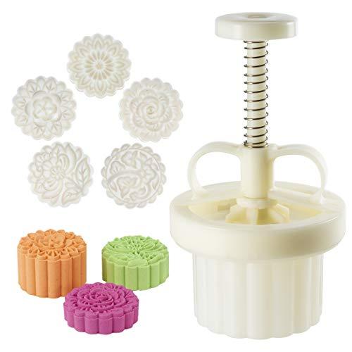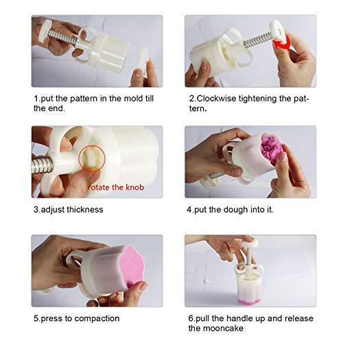 HIRALIY 50g 6 Stamps Cookie Stamps Moon Cake Mold, Thickness Adjustable Christmas Cookie Press DIY Decoration Hand Press Cutter Cake Mold
