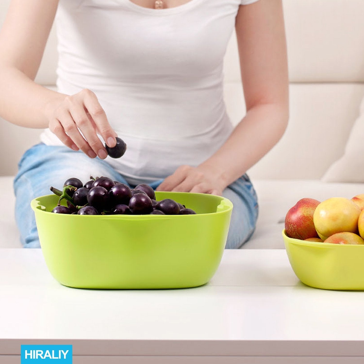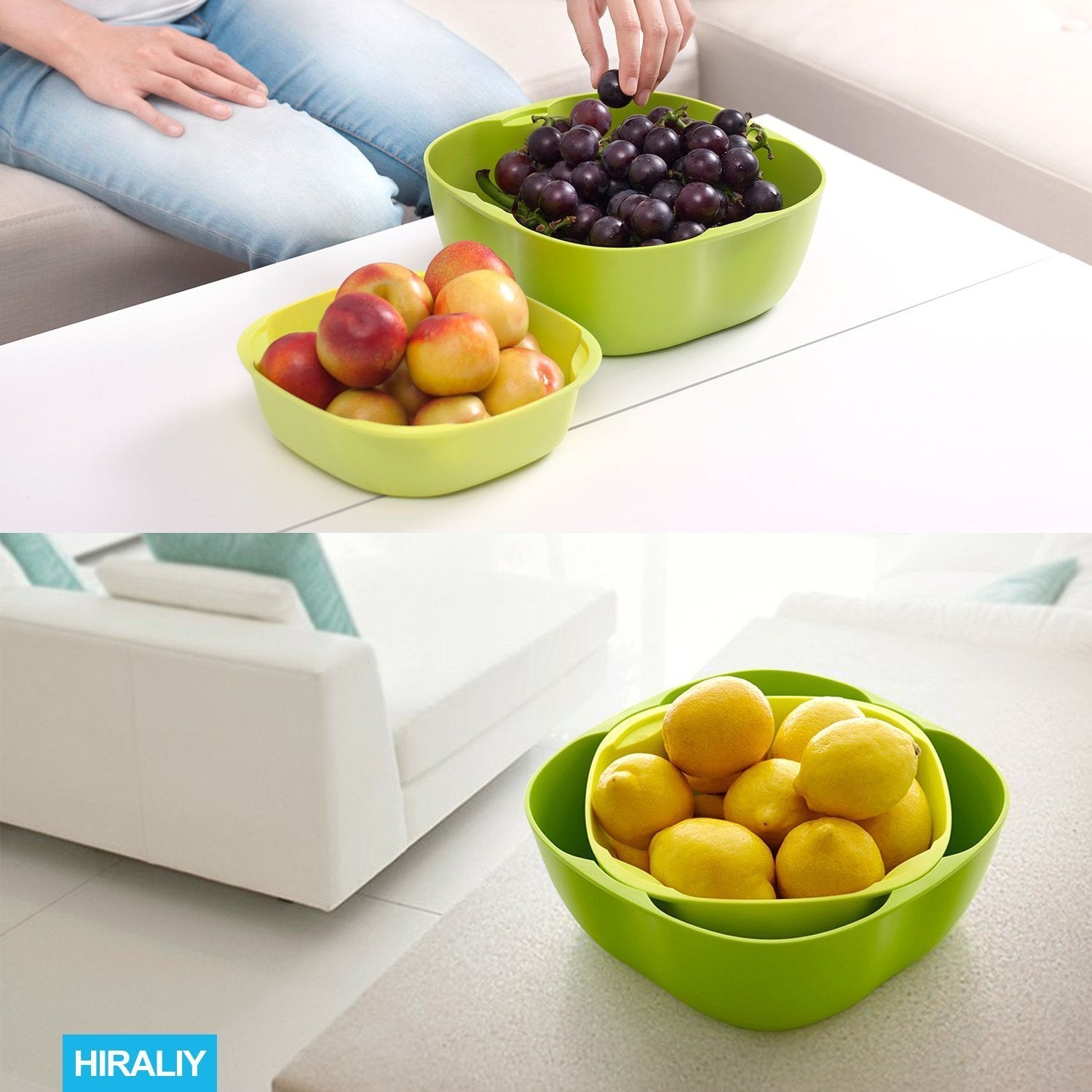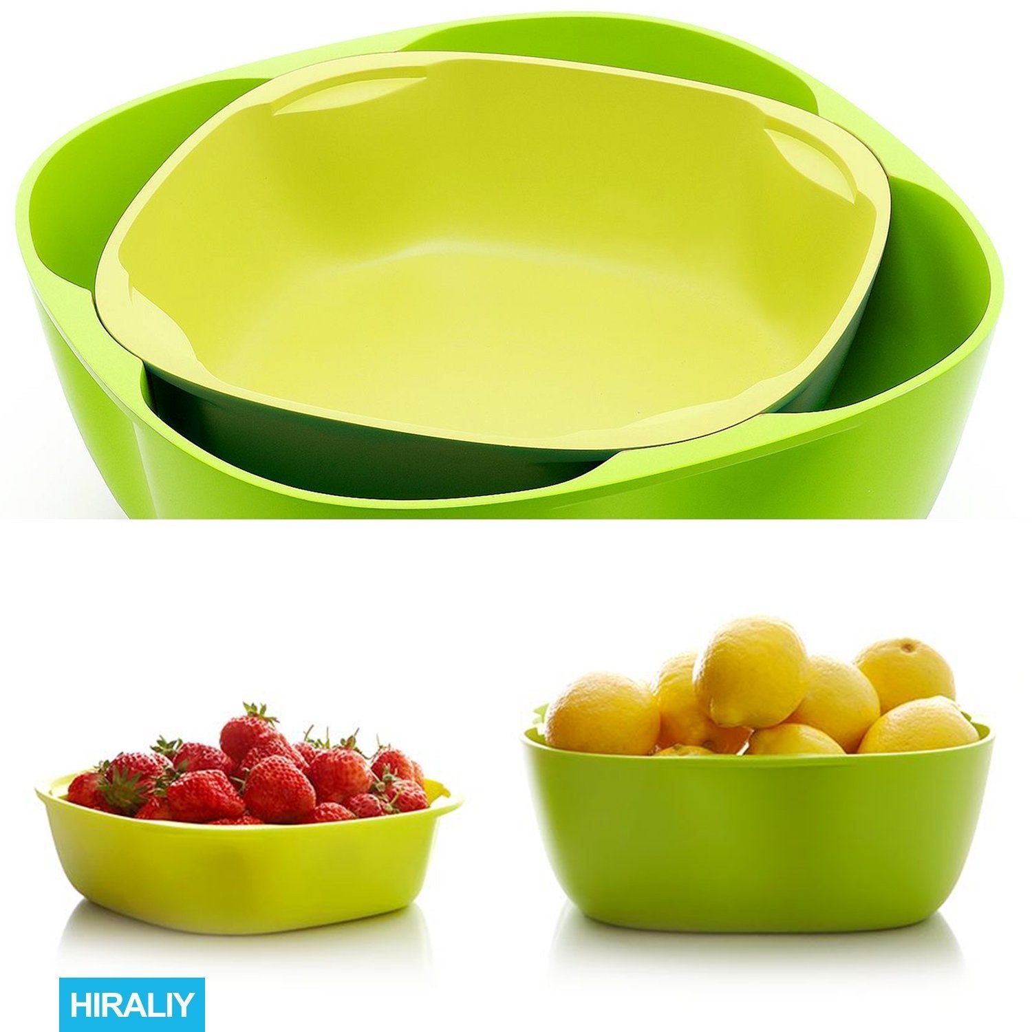 ✔Sturdy and durable, made of food-grade safe pp materials without BPA. Big bowl: 9.8"*9.8"3.7"; Small bowl: 8"*8"*2.4". All HIRALIY product have 18 months worry-free warranty