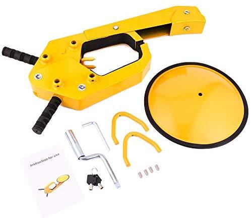 [Universal Use for Most Vehicles] The design of this tire lock is meant to be easily adjusted to different kinds of rim and tire sizes. This powerful anti-theft wheel tire clamp will be the bodyguard for most trailers, cars, SUV, Caravans, ATV, RV 24/7. 【Note】: the tire radius should be less than 14". [Powerful Material] Made of heavy-duty steel and covered by rust-resistant coating, this clamp lock is quite durable, reliable and weather-resistant. Soft PVC is wrapped around the clamp which prevents scratch or damage on wheels or rims. [Perfect Function] this clamp will perfectly stop your car from turning or rotating so that it looks simple but effective. Locking the car wheel when parking for a long time and protect your car from being stolen. [Easy to install] Easy to use while hard to break, you just need to do is to gently push down the key hole for locking it up, and please make the top part of the key confront the corner when you unlock it. [Easy to store] Portable and easy to store and its size will fit in your trunk boot.